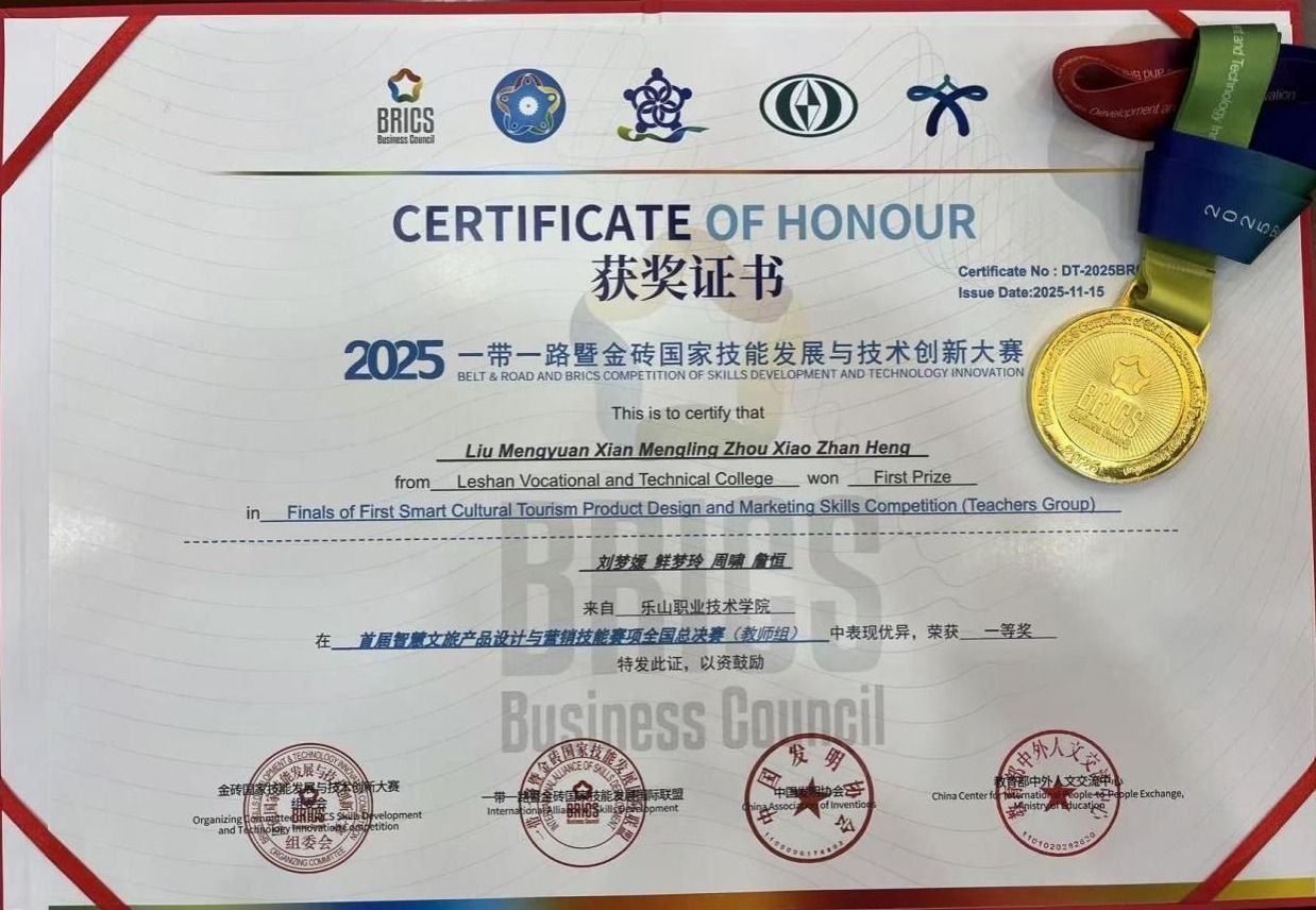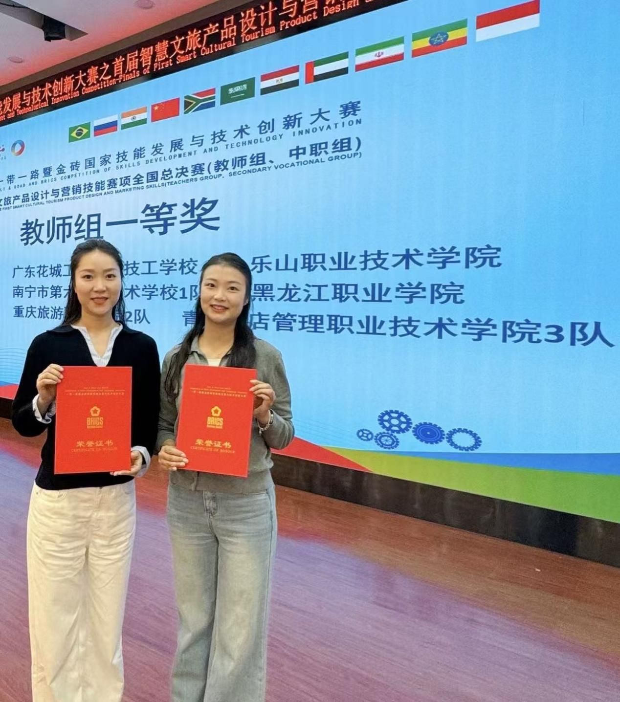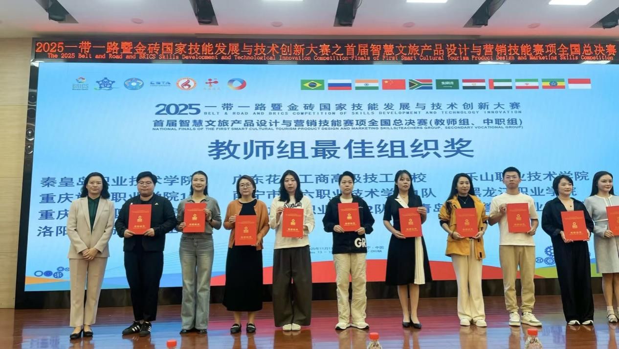 近日,2025年“一带一路暨金砖国家技能发展与技术创新大赛之首届智慧文旅产品设计与营销技能大赛”全国总决赛在南宁市第六职业技术学院落下帷幕,威尼斯文化旅游学院选派的教师代表队(参赛教师刘梦媛、鲜梦玲、周啸、詹恒)从全国百余支参赛队伍中脱颖而出,荣获全国教师组一等奖,学校荣获“最佳组织奖”。
