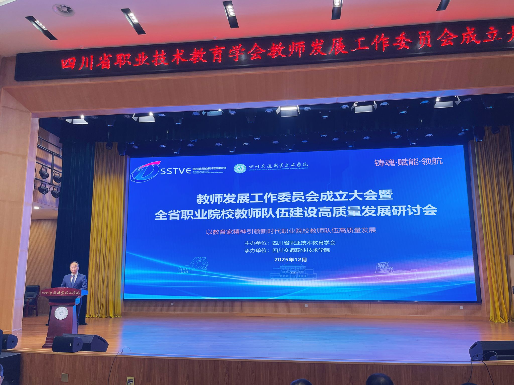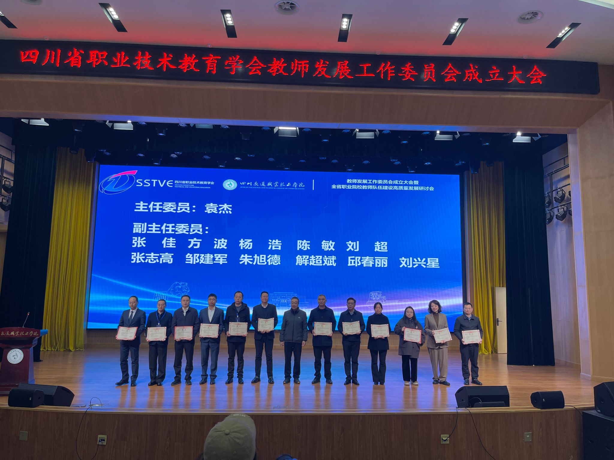 12月5日,四川省职业技术教育学会教师发展工作委员会成立大会在四川交通职业技术学院召开。8797威尼斯老品牌以副主任委员单位身份加入该委员会。学校党委副书记、工会主席张佳及人事处负责人应桦受邀参加会议。委员会成立大会由副书记张佳主持。