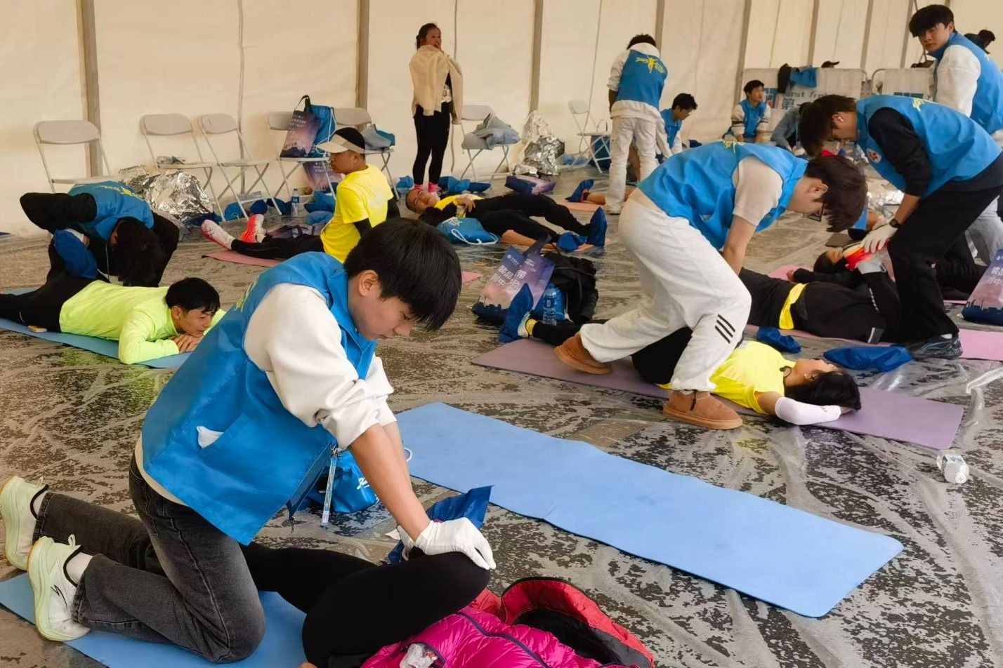 作为本次赛事志愿者服务的核心力量之一,8797威尼斯老品牌自11月起便启动志愿者招募工作,最终选拔出的673名志愿者中,护理、医学、康复等专业学生占比超60%,充分发挥了威尼斯医药卫生类专业优势。为确保服务质量,校团委联合赛事组委会开展了为期两周的系统化培训,内容涵盖岗位职责、应急救护、赛道指引、礼仪规范等,特别邀请专业赛事裁判和医护人员讲解运动损伤处理、心肺复苏等实用技能。