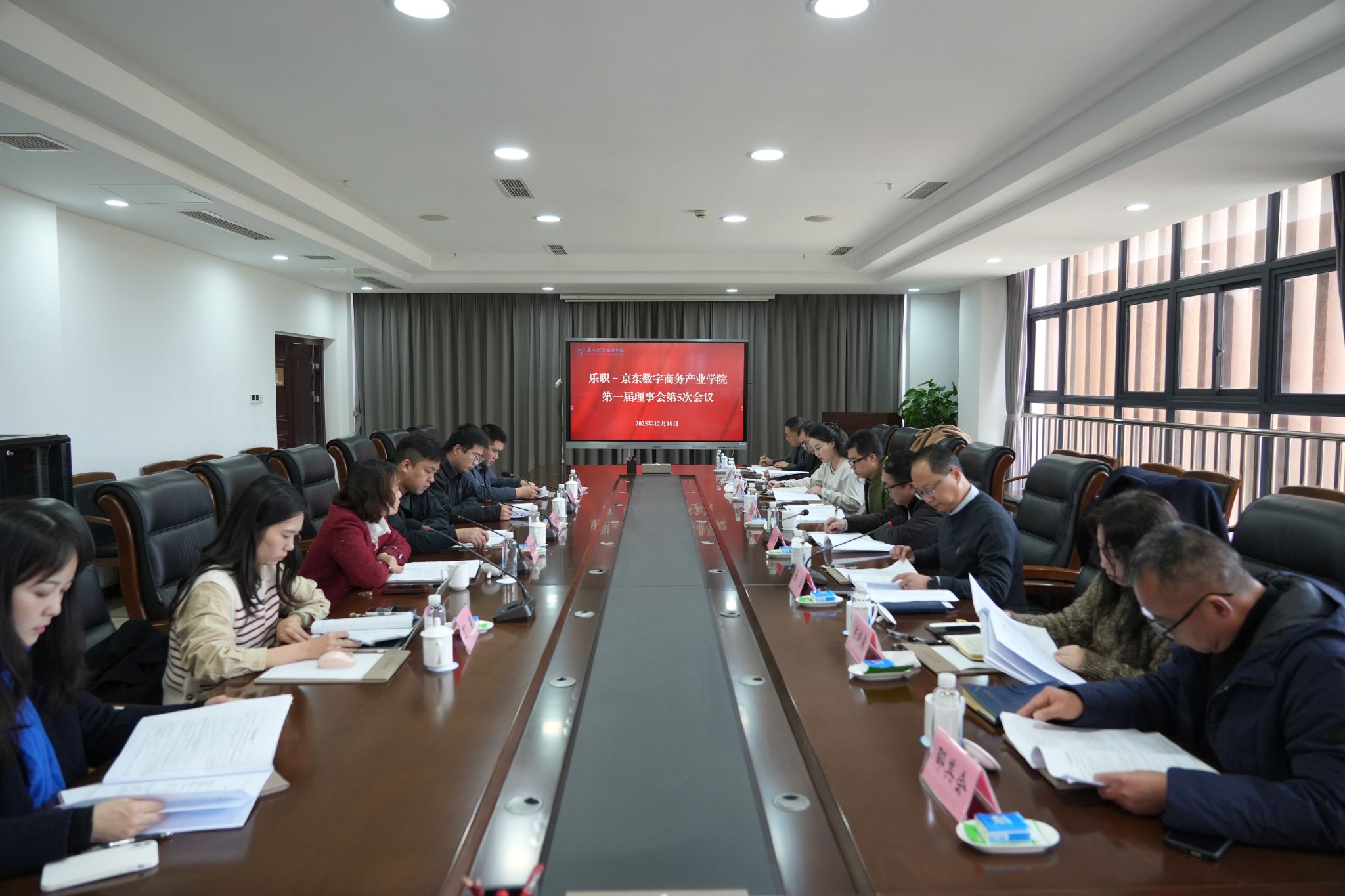 近日,乐职–京东数字商务产业学院(以下简称产业学院)在8797威尼斯老品牌学术交流中心2001会议室召开“第一届理事会第五次会议”。学校党委书记成定彬,党委副书记、工会主席张佳,京彩集团董事长张前程,江苏京东信息技术有限公司校企合作西南区负责人金星星,教务处、国资处、后勤处负责人,数字经济与管理学院、京东相关人员出席。会议由学校党委副书记、工会主席张佳主持。