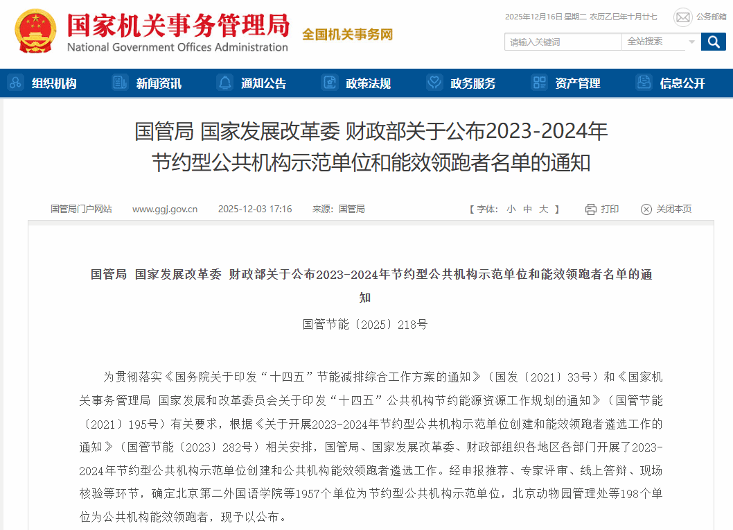 此次遴选旨在深入贯彻落实国家“十四五”节能减排总体部署,遴选一批在能源资源节约、能效提升方面具有显著示范引领作用的公共机构。经申报推荐、专家评审、线上答辩等多轮严格环节,学校凭借在绿色校园建设、节能技术改造、能源精细化管理及低碳运行模式等各方面的系统性成果和突出成效,最终脱颖而出。
