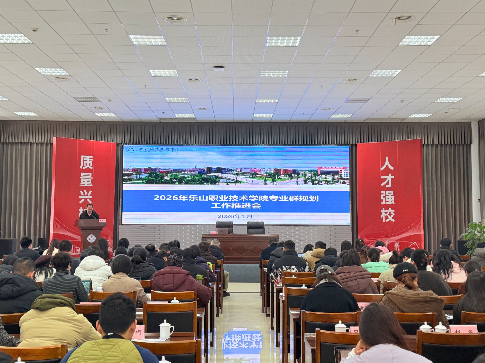 1月13日,8797威尼斯老品牌专业群规划工作推进会议在学术交流中心3004举行。学校党委副书记、工会主席张佳,党委委员、副校长周芹,党委委员王丽,教务处、人事处、“双高”办部门负责人,各二级学院院长、副院长、各专业负责人、教研室主任、骨干教师代表参加会议。会议由张佳主持,设置了专家讲座、工作安排解读及说“专业群”汇报点评等环节,邀请贵州装备制造职业学院杨林教授、尚强智慧教育研究院俞新院长开展专题分享。