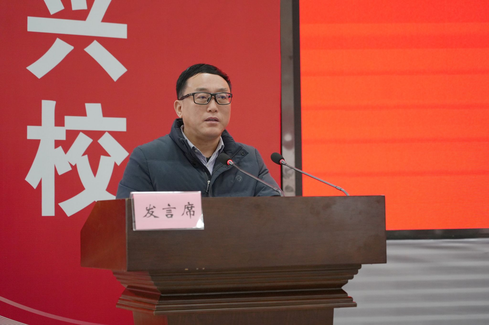 在圆满完成会议各项议程后,党委书记成定彬作讲话。他指出,2025年,学校以就业质量提升年为主题狠抓落实,围绕区域经济社会发展优化专业布局,大力开展访企拓岗,校领导带队分组赴区县全覆盖开展对接合作,坚持项目为牵引推动“双高建设”,圆满完成年度目标任务。成定彬强调,全体教职员工务必要增强“四感”,践行“四爱”,克服“四坐”,牢固树立“今天再晚也是早,明天再早也是晚”的效率意识,持续用力推动学校高质量发展。2026年,学校将坚持以习近平新时代中国特色社会主义思想为指导,紧扣市委“工业强市、文旅兴市”发展战略,认真践行“质量兴校、人才强校”,围绕“1334”年度基本思路(即:围绕提升服务区域经济社会发展能力一个目标;提升专任教师、思政课教师、专职辅导员三支队伍职业能力;守好零通报、零舆情、零事故“三零”底线;做好党委换届、“十五五”规划编制、新一轮“双高”建设、联办本科专业四项重点工作),比效率、比实干、比担当、比成果,以高质量党建引领学校高质量发展。