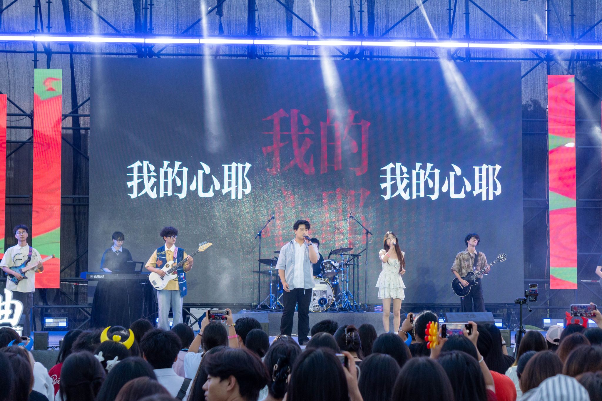 音乐节上,由在校学生组成的乐队成为舞台焦点。以曲目《鲜花》开场,吉他与鼓点交织出夏日的蓬勃生机;《想去海边》用清亮嗓音勾勒出青春的自由与向往;《爱的飞行日记》,唱出对校园生活的眷恋。《月牙湾》大胆创新,将传统民乐二胡融入其中,尤为亮眼,李恩泽独挑大梁的《逆战》以激昂旋律点燃全场,乐队默契配合,将摇滚精神演绎得淋漓尽致。每一支乐队从曲目编排到现场演绎,均展现出扎实的音乐功底与独特的艺术风格,成为音乐节最动人的风景线。