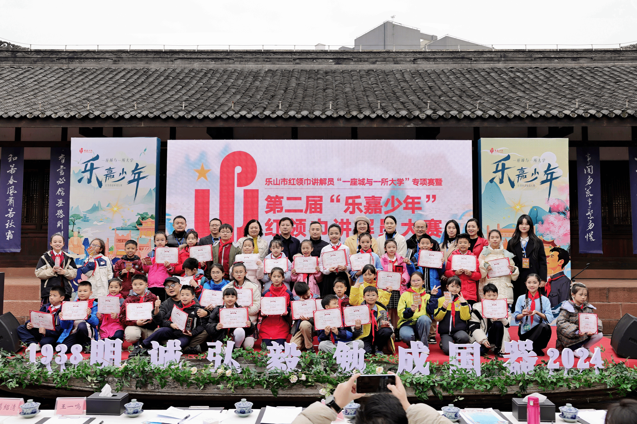 2024年12月1日,乐山市红领巾讲解员“一座城与一所大学”专项赛暨第二届“乐嘉少年”红领巾讲解员大赛决赛在乐山中心城区龙神祠举行。
