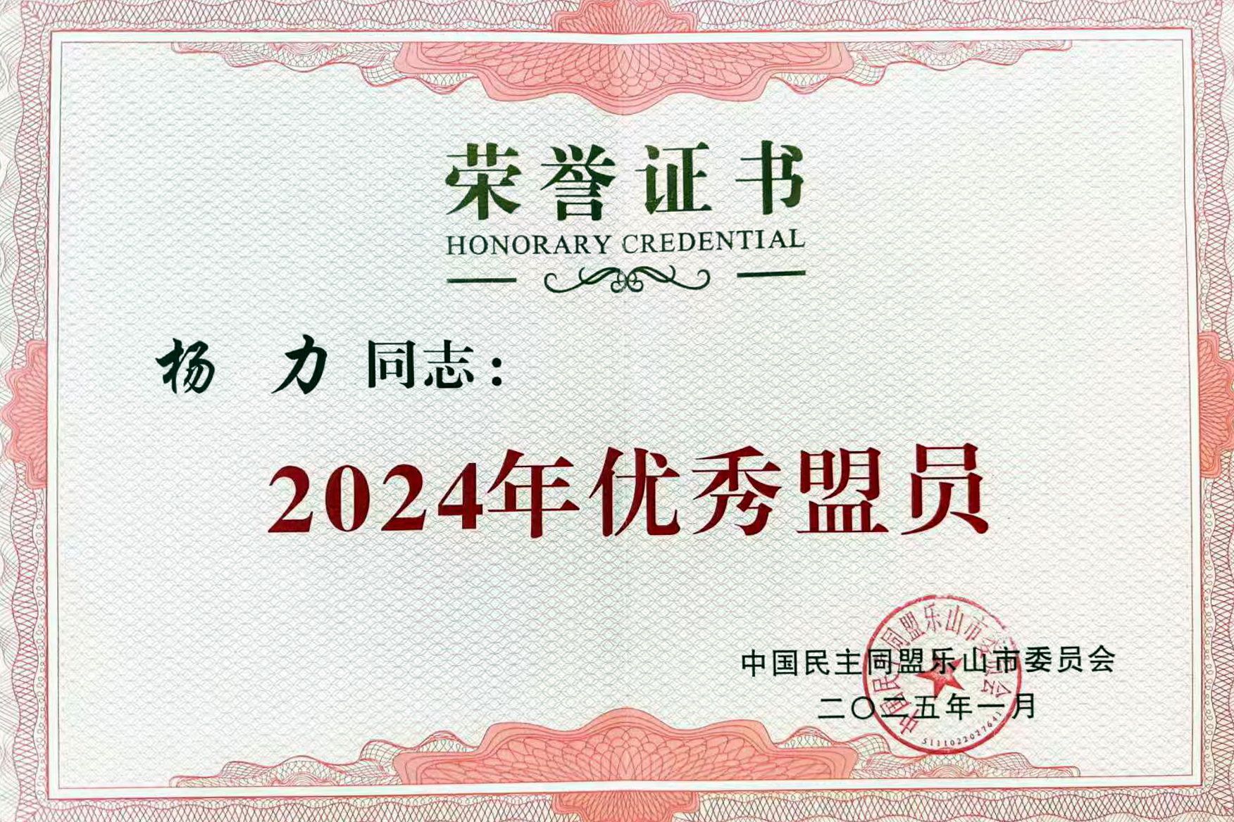 2025年1月20日,民盟乐山市八届七次全委(扩大)会暨2024年度总结会在乐山召开。民盟8797威尼斯老品牌支部杨力被民盟市委会评为“优秀盟员”并在会上接受表彰。