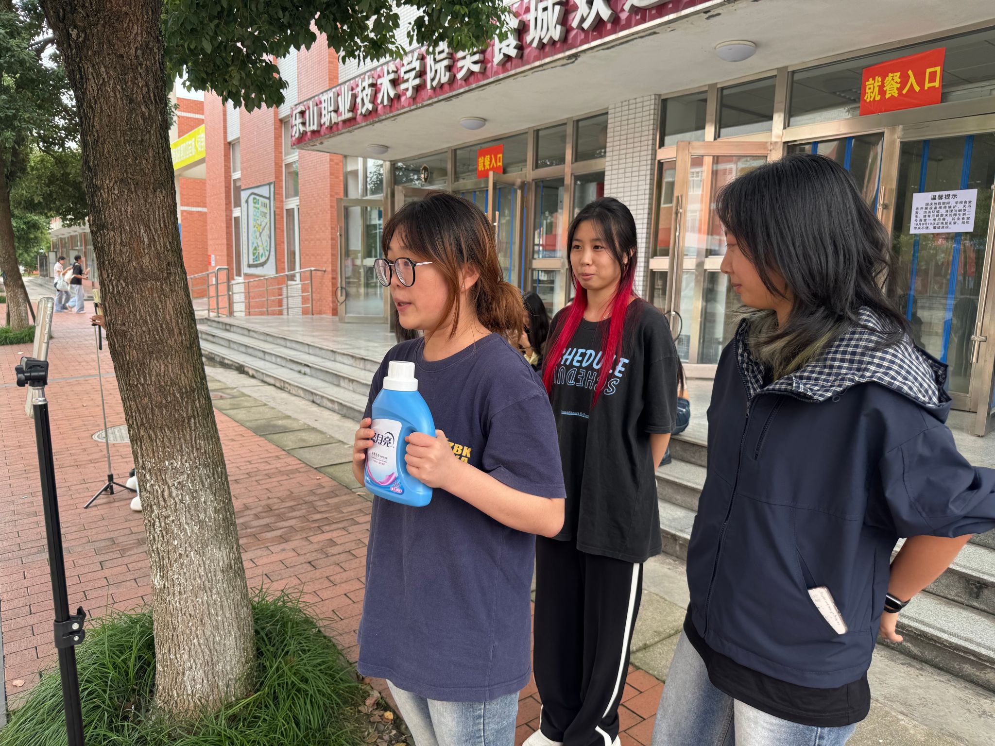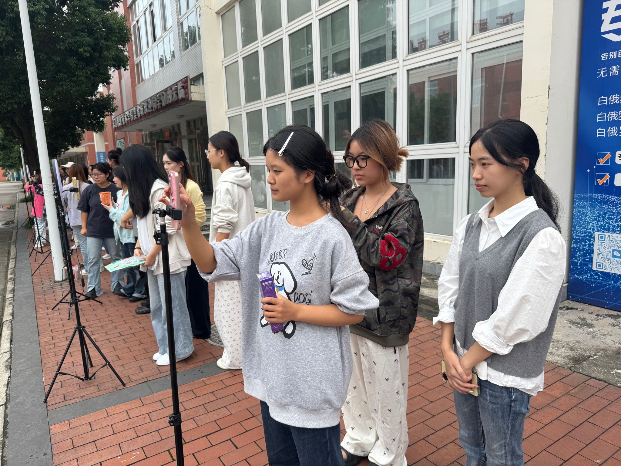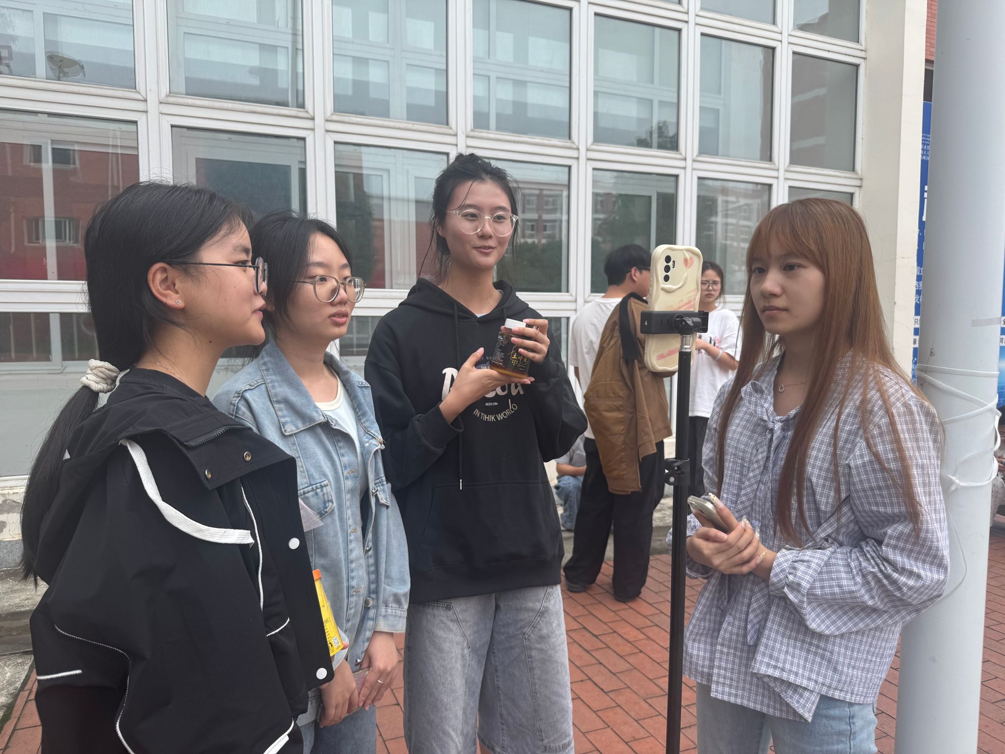 将直播间搬至户外广场,让课堂对接产业需求。9 月 29 日下午,数字经济与管理学院创新教学场景,在校园户外广场开展“主播表现力专项实训”,通过沉浸式、场景化训练破解电商专业学生“镜头恐惧”痛点,为乐山打造 “美食之都”培养实用型直播人才,助力本地美食及农特产品走向更广阔市场。