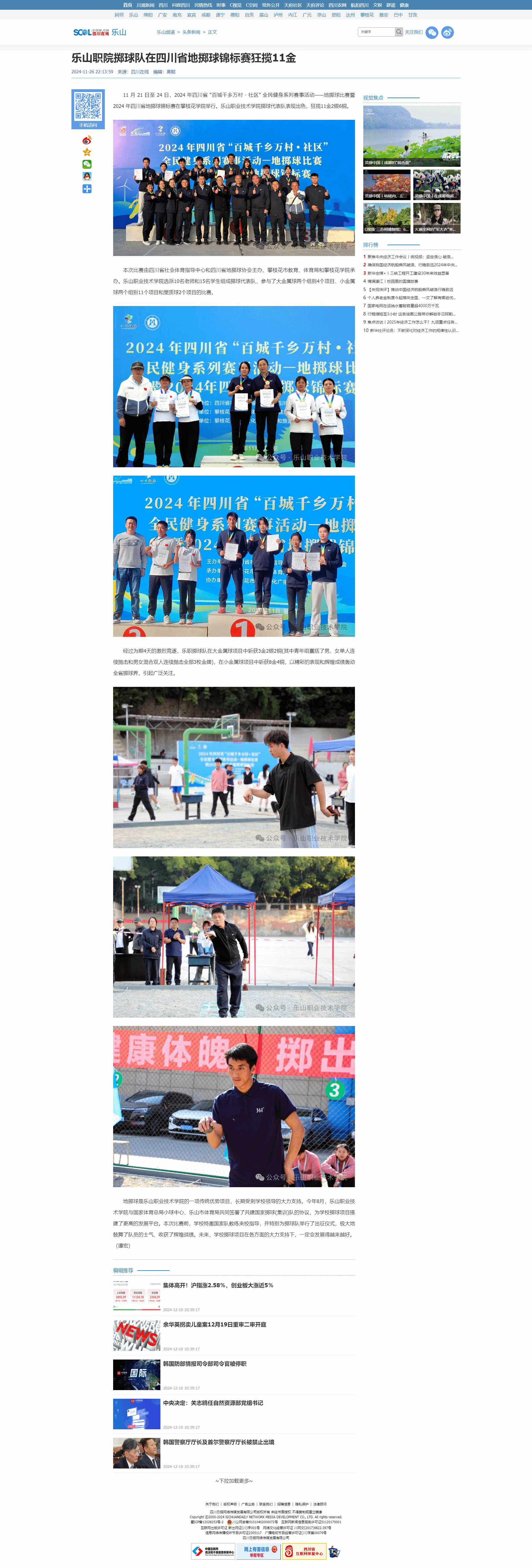四川在线:乐山职院掷球队在四川省地掷球锦标赛狂揽11金