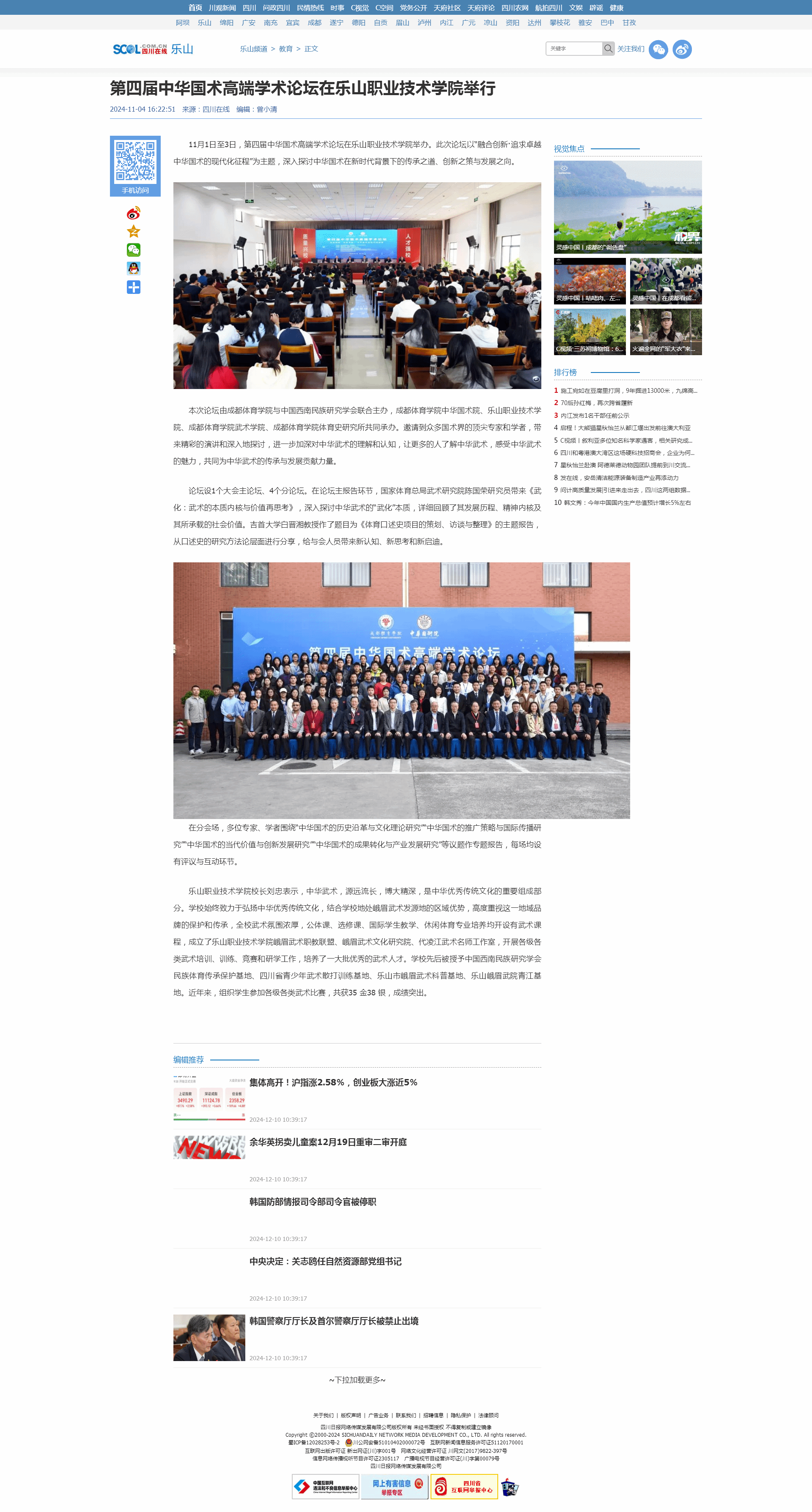 乐山新闻网:第四届中华国术高端学术论坛在乐山举行