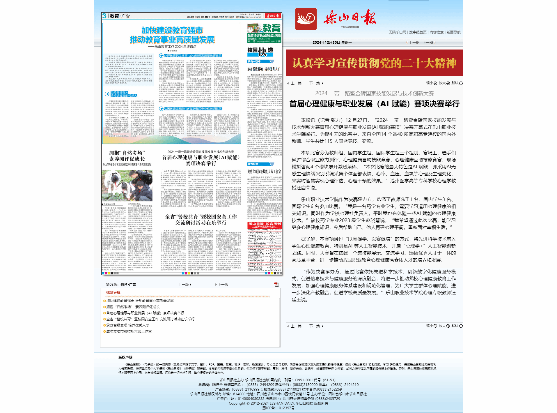 乐山日报:2024“ 一带一路”暨金砖国家技能发展与技术创新大赛首届心理健康与职业发展(AI 赋能)赛项决赛举行