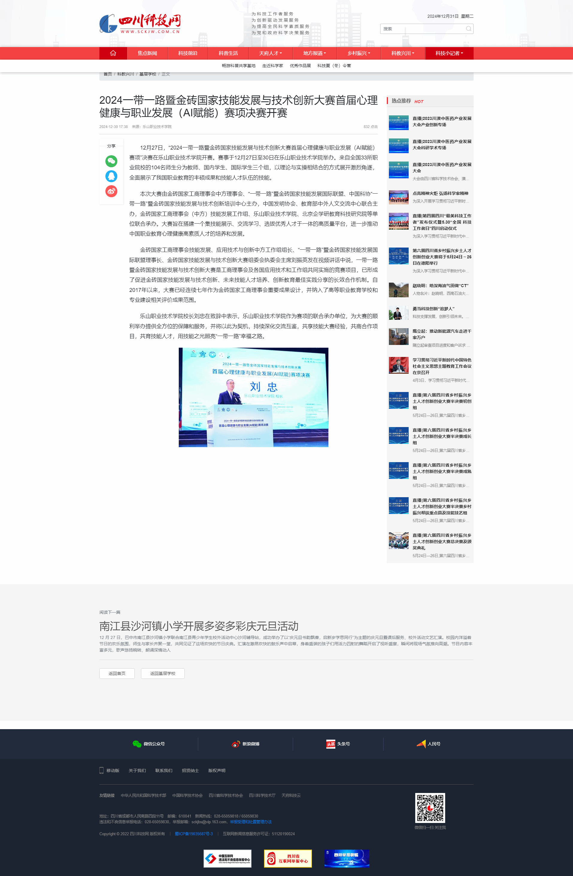 四川科技网:2024“一带一路”暨金砖国家技能发展与技术创新大赛首届心理健康与职业发展(AI赋能)赛项决赛开赛