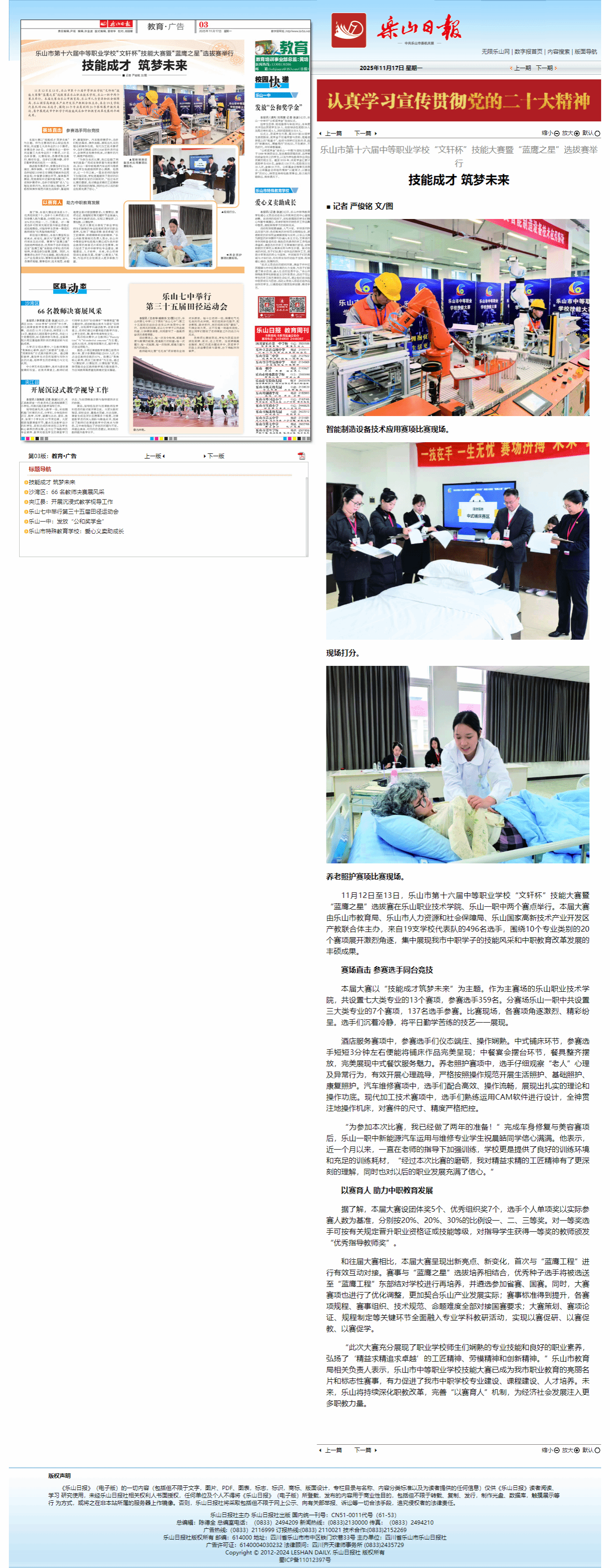 乐山日报:技能成才 筑梦未来