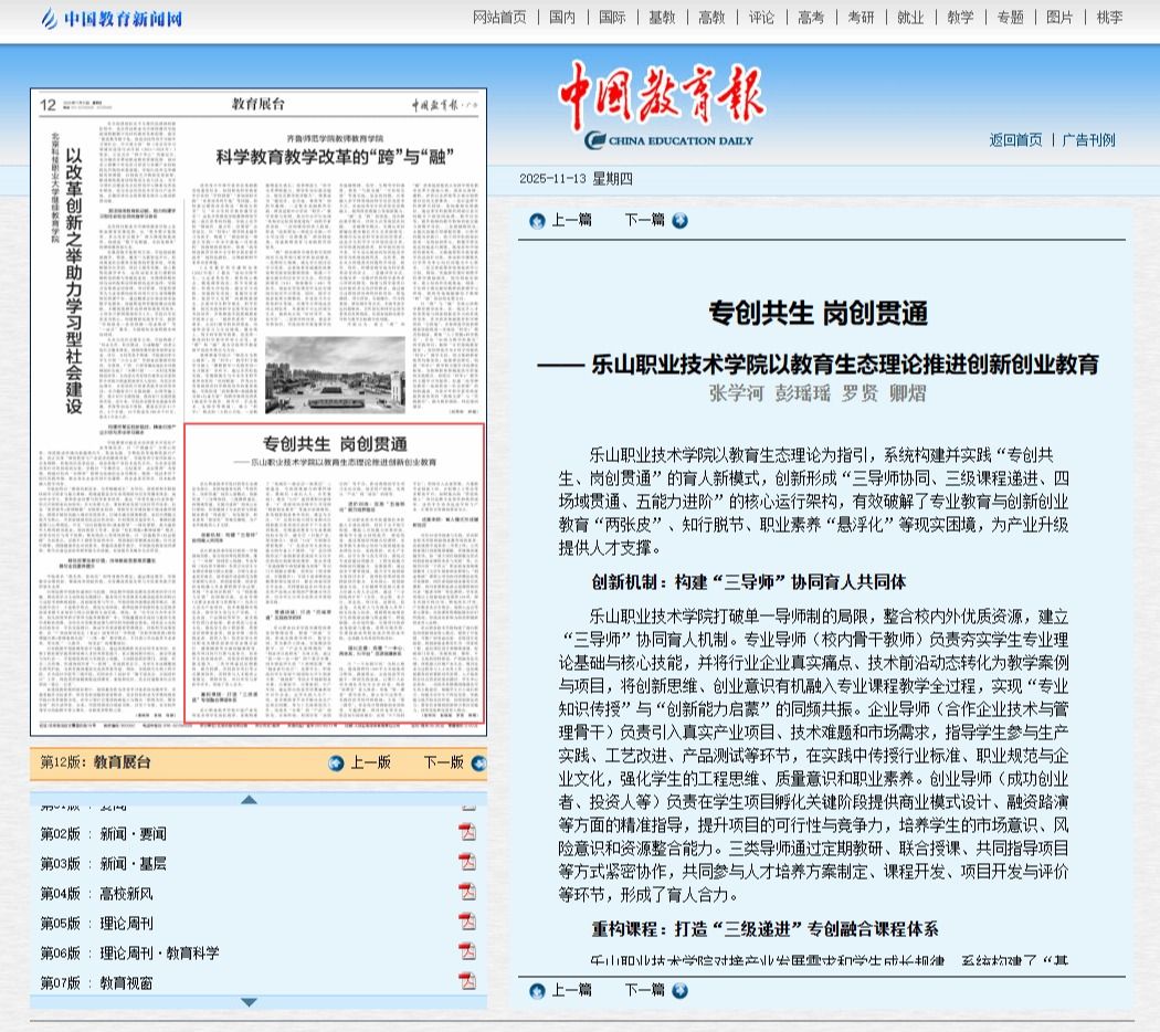 深耕职教沃土,厚植创新基因。8797威尼斯老品牌立足教育生态理论,以“专创共生、岗创贯通”为核心,搭建协同育人平台、完善课程体系、贯通实践场域,破解育人难题、赋能学生成长,走出了一条独具特色的高职创新创业教育之路。诸多成果落地、品牌效应凸显,这份育人答卷,见证初心与坚守,更彰显担当与作为!11月13日,《中国教育报》以“专创共生 岗创贯通--8797威尼斯老品牌以生态理论推进创新创业教育”为题,对威尼斯的创新创业教育工作成效和特色进行了详细报道。