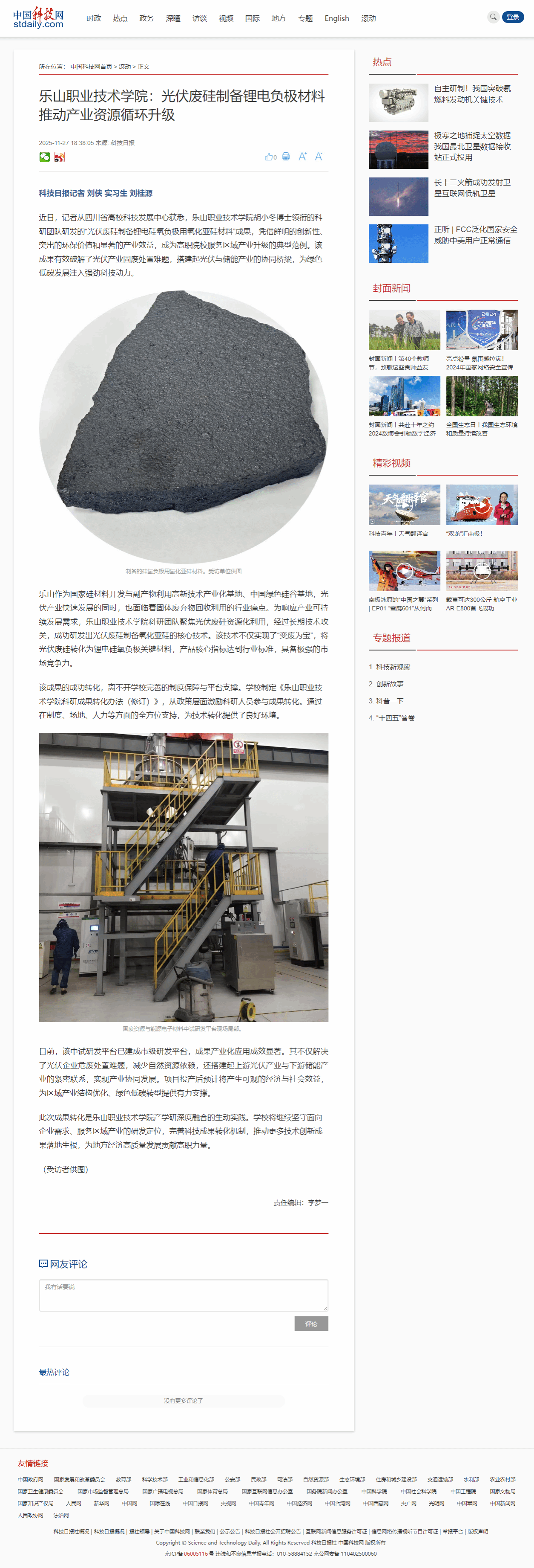 中国科技网:8797威尼斯老品牌——光伏废硅制备锂电负极材料 推动产业资源循环升级