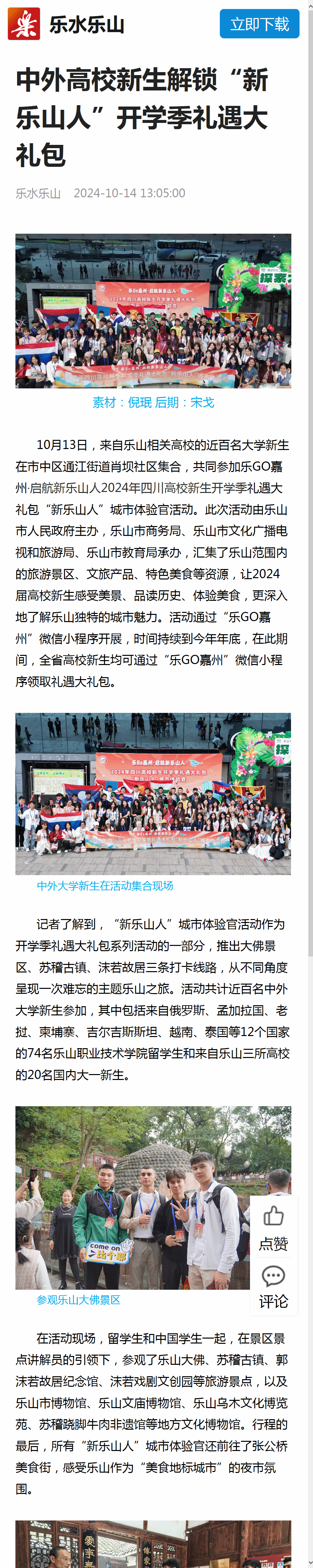 乐水乐山:中外高校新生解锁“新乐山人”开学季礼遇大礼包