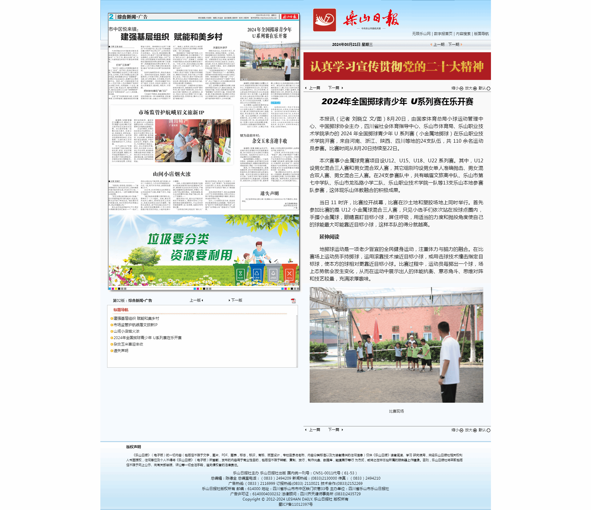 乐山日报:2024年全国掷球青少年 U系列赛在乐开赛