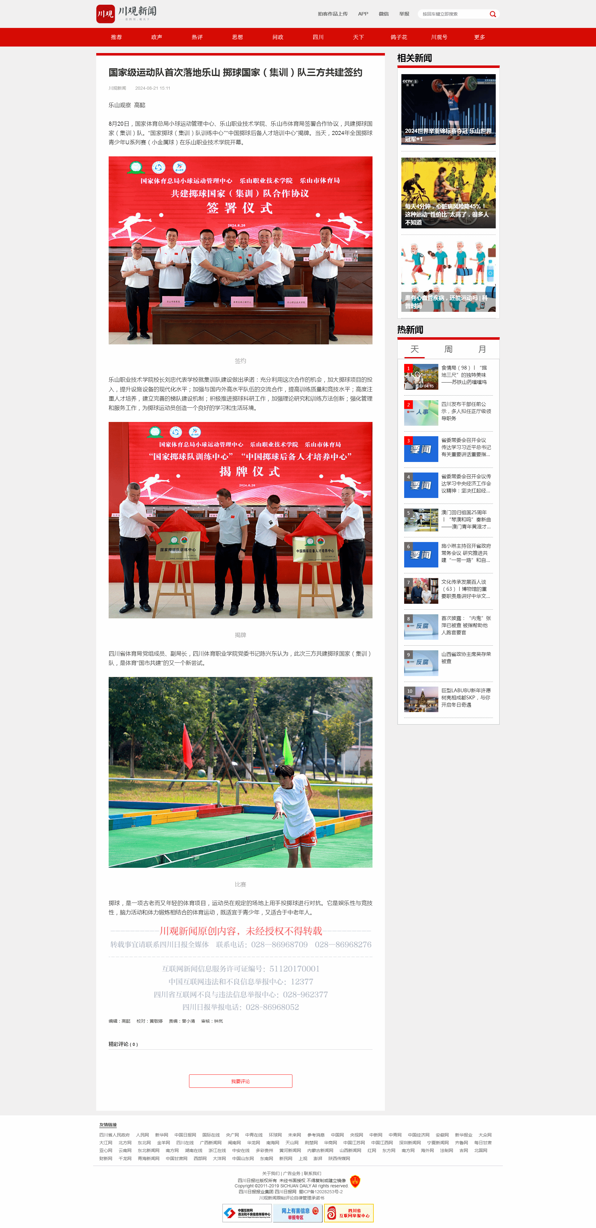 四川在线网:国家级运动队首次落地乐山 掷球国家(集训)队三方共建签约