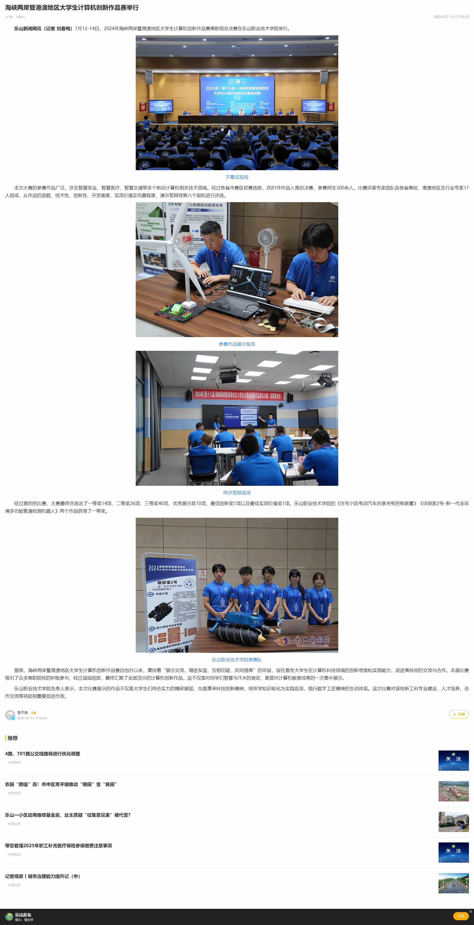 乐山发布:海峡两岸暨港澳地区大学生计算机创新作品赛举行