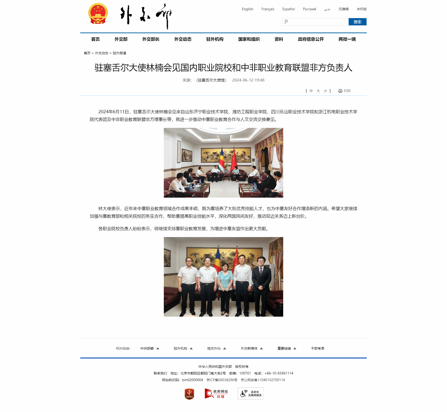 外交部:驻塞舌尔大使林楠会见国内职业院校和中非职业教育联盟非方负责人