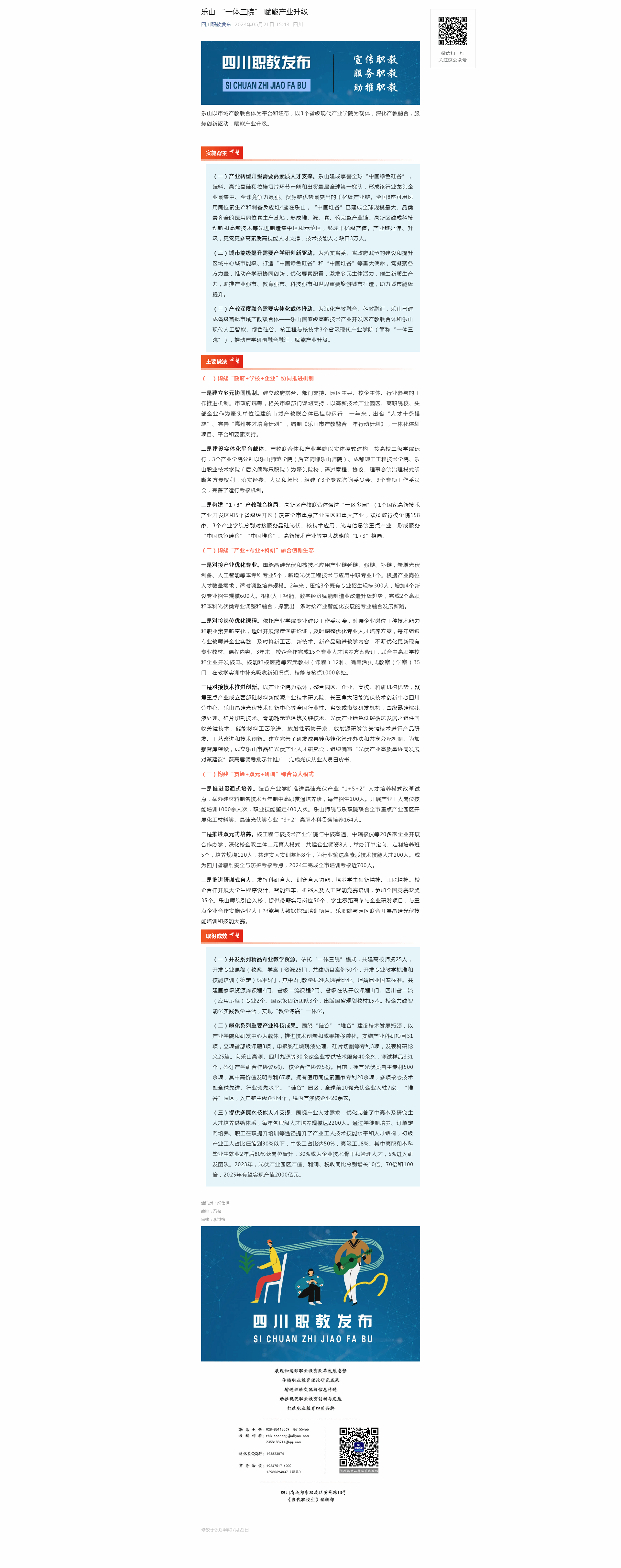 四川职教发布:乐山 “一体三院” 赋能产业升级