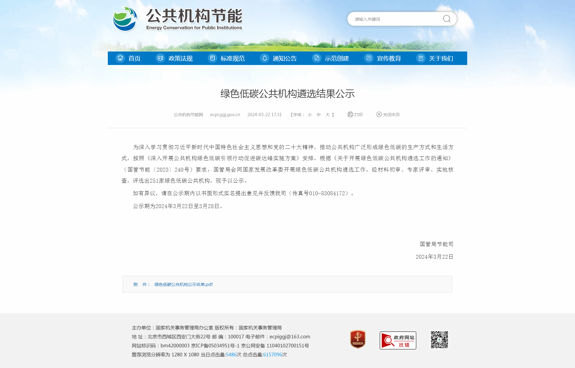 公共节能机构网:绿色低碳公共机构遴选结果公示(威尼斯入选)