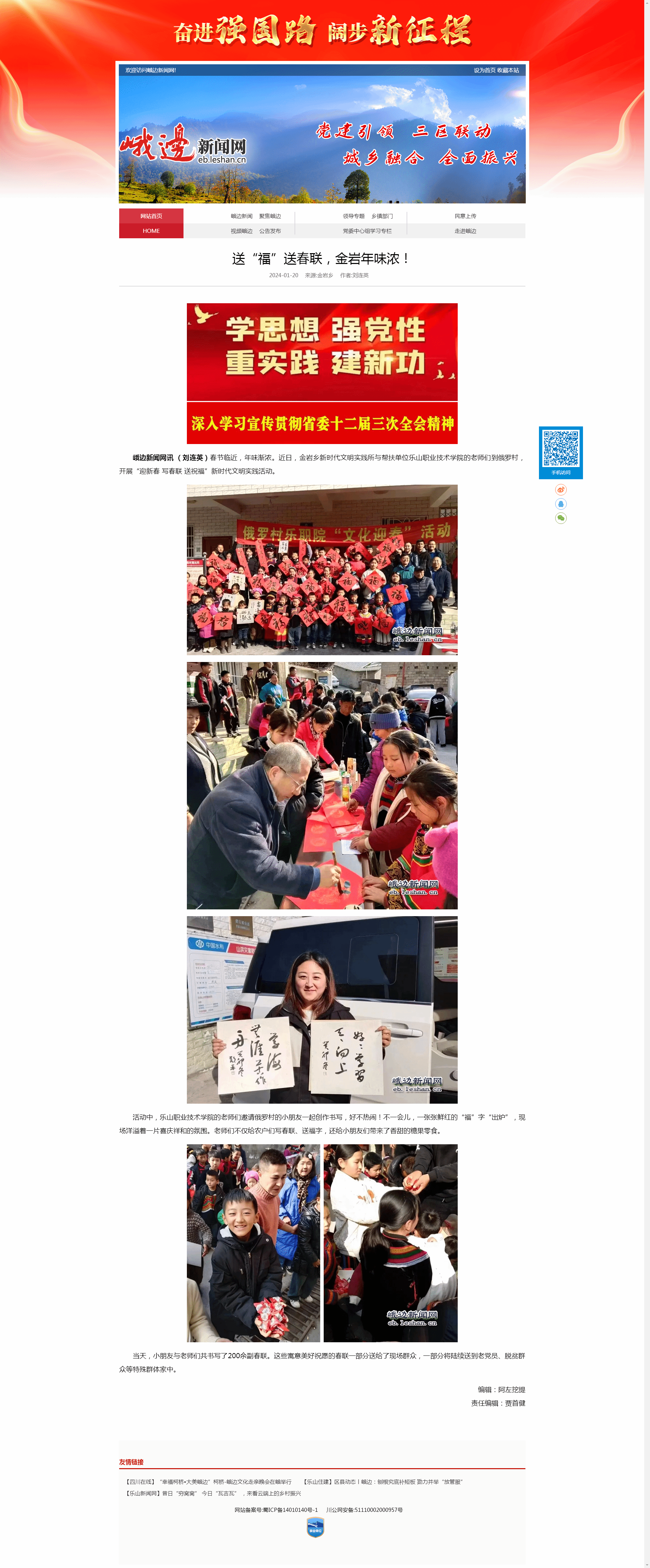 下一篇:乐山新闻网:送“福”送春联,峨边金岩年味浓!