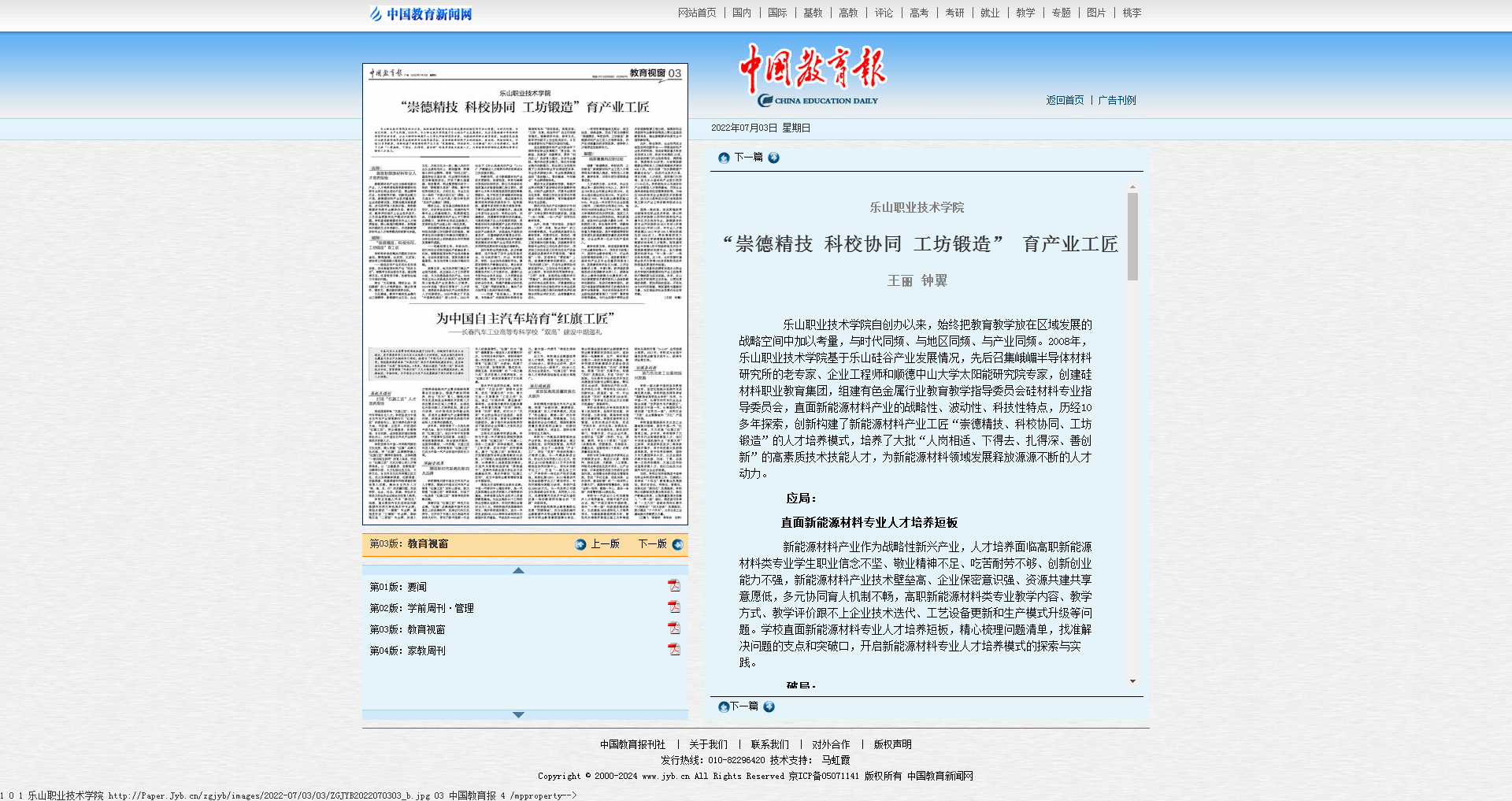 中国教育报:8797威尼斯老品牌“崇德精技 科校协同 工坊锻造” 育产业工匠
