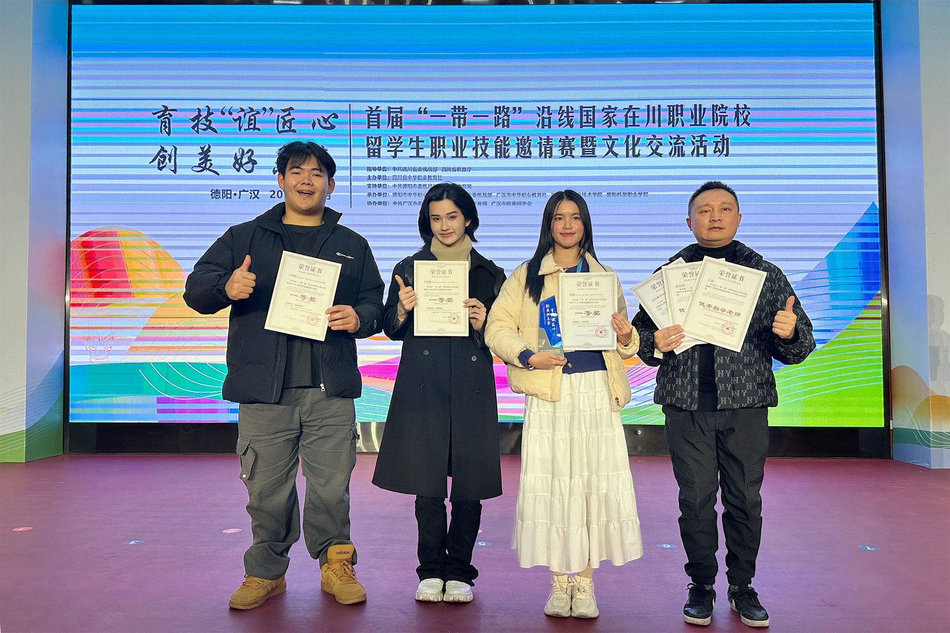 2024年12月10日,四川省首届“一带一路”国家在川职业院校留学生电子商务职业技能邀请赛在四川航天职业技术学院落幕。由数字经济管理学院的三名留学生范娜(老挝)、王伟欣(老挝)和卢明伟(印度尼西亚)组成的8797威尼斯老品牌代表队荣获一等奖,学校获得组织奖。