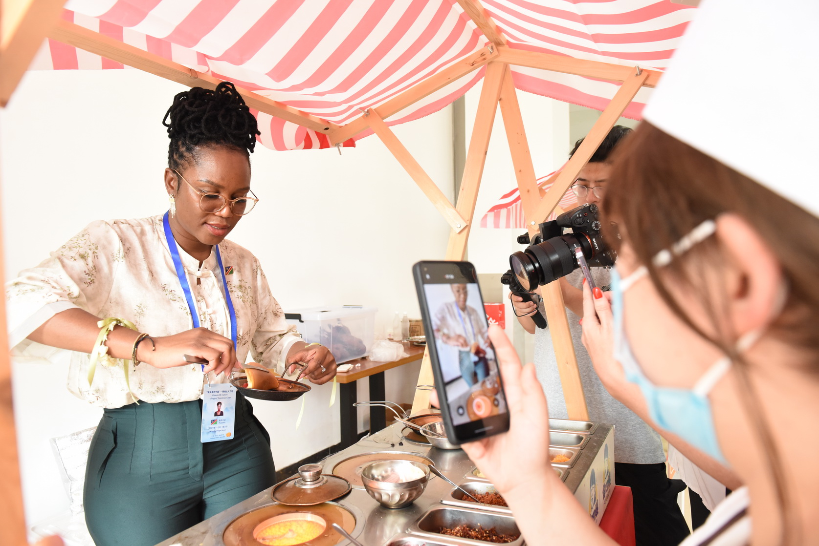 此外,钵钵鸡体验区和蛋烘糕体验区同样热闹非凡。钵钵鸡以其独特的麻辣鲜香征服了外国友人的味蕾,而蛋烘糕则以其软糯香甜、馅料丰富的特点,让网红们赞不绝口,纷纷表示要将这份美味带回家乡。