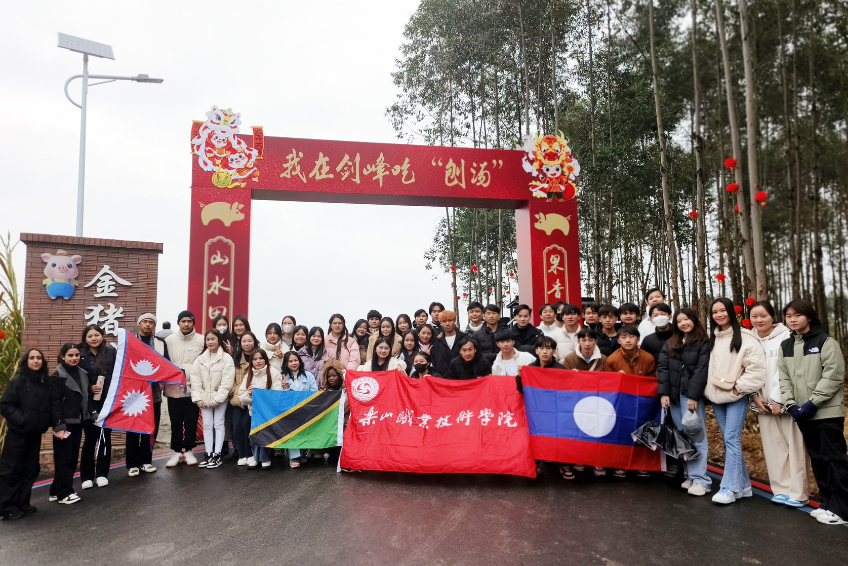 2024年1月20日“乐山2024首届年猪文化活动”在乐山市市中区剑锋镇举行,8797威尼斯老品牌53名来自老挝、尼泊尔和坦桑尼亚的学生和老师们一道参加了此次活动。