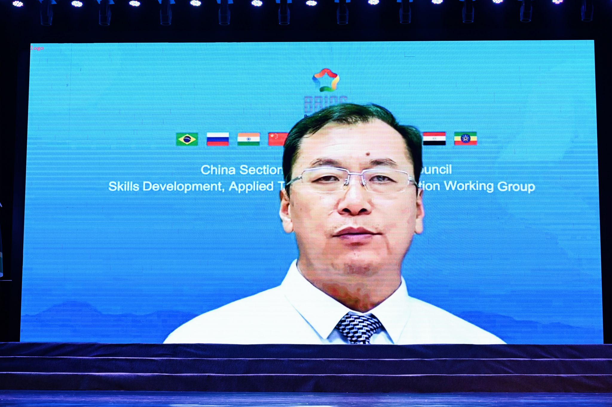 金砖国家工商理事会技能发展、应用技术与创新中方工作组组长、“一带一路”暨金砖国家技能发展国际联盟理事长、金砖国家技能发展与技术创新大赛组委会执委会主席刘振英发来视频讲话。他介绍,“一带一路”暨金砖国家技能发展与技术创新大赛是工商理事会及各国应用技术和工作组共同实施的竞赛成果,也是促进金砖国家技能发展与技术创新、未来技能人才培养、创新教育最佳实践分享的长效合作机制。自2017年以来,大赛已经连续七年作为金砖国家工商理事会重要成果设计,且纳入了高等职业教育学校和专业建设相关评价成果范围。