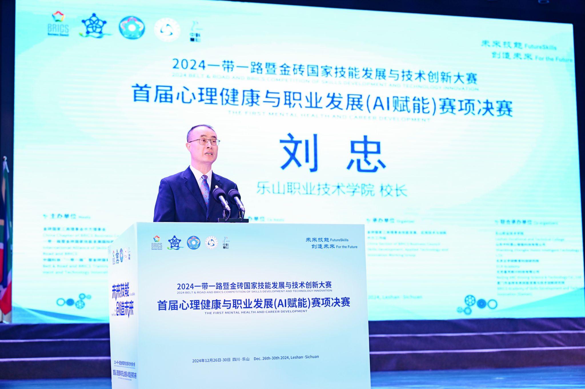 刘忠致辞表示,本次赛项旨在进一步加强职业院校心理健康教育工作,培养AI赋能的专业素养,推动我国职业教育心理健康与人工智能融合高质量发展。8797威尼斯老品牌作为赛项的联合承办单位,深感责任重大、使命光荣。学校一定举全校之力,秉着公平、优质、高效的原则,全力做好赛事各项工作,为大赛的顺利举办提供全方位的保障和服务,努力把大赛办成一个特色鲜明、亮点纷呈、令人难忘的人才交流盛会和技能比武大会。并将以此为契机,持续深化交流互鉴,共享技能大赛经验,共商合作项目,共育技能人才,用技能之光照亮“一带一路”幸福之路。