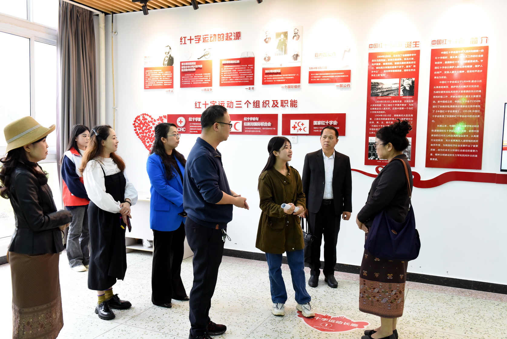 会前,周芹陪同老挝琅勃拉邦省教育与体育厅代表团一行参观考察了学生公寓、学生食堂、实训室、实习工厂等,还来到教室看望老挝琅勃拉邦省来校留学的2023级新生并与他们交流。