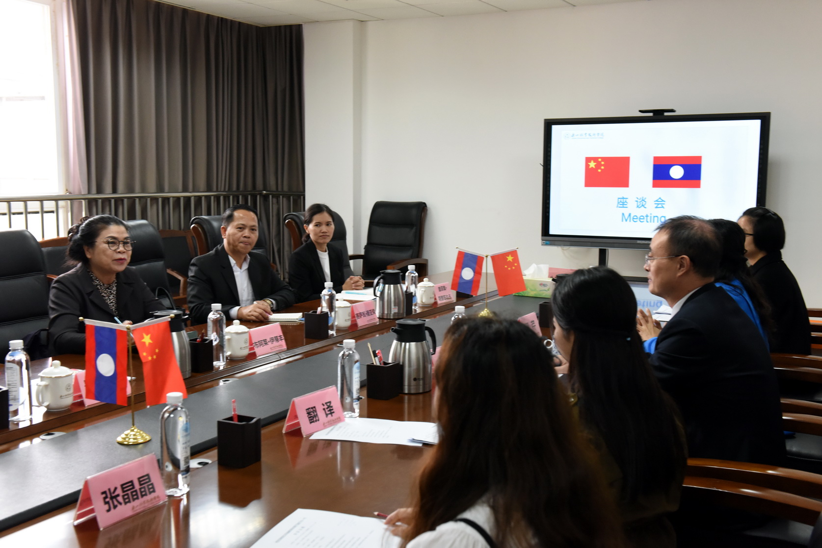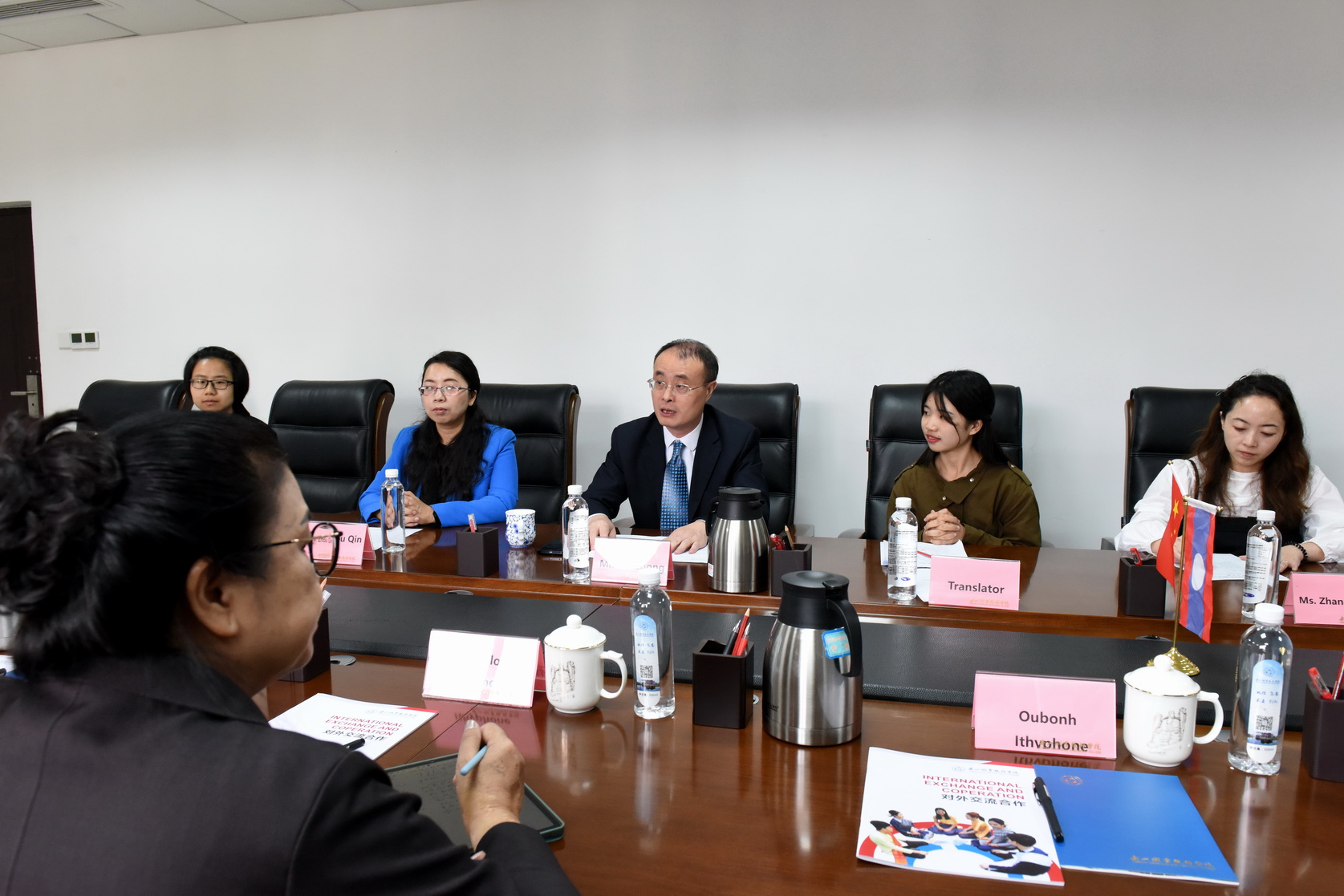 2023年10月25日,老挝琅勃拉邦省教育与体育厅副厅长布阿莱•伊蒂丰一行来校交流访问,实地考察学校学习生活环境,并与学校领导和留学生开展了交流座谈。校长刘忠,党委委员、副校长周芹,国际学院相关负责人及在校就读的琅勃拉邦省派送学生代表参加了交流座谈会,座谈会由周芹主持。