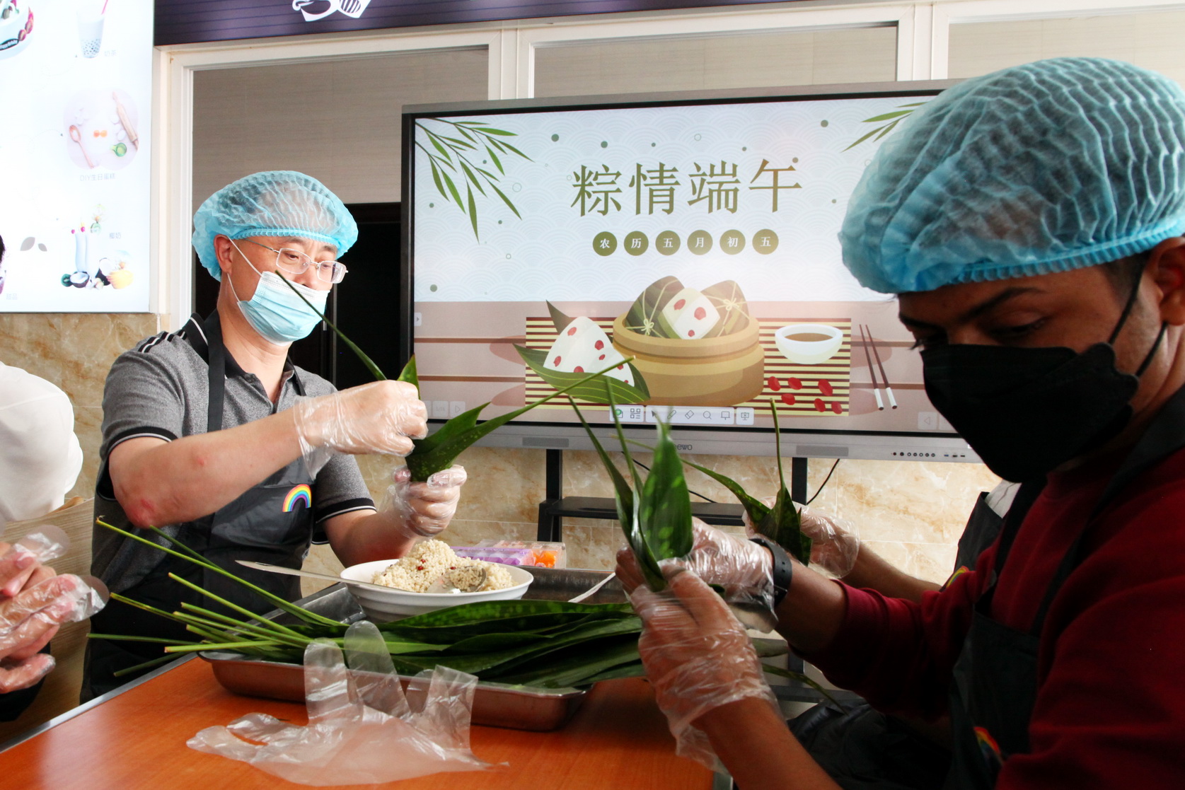 为了使学院中外师生感受传承中华民族传统文化,体验端午民俗, 6月1日下午,由学院工会主办,机关工会 、后勤处、教务处、学工部承办的“粽情端午”乐山职院中外师生中华传统文化体验活动在学院一食堂举行。
