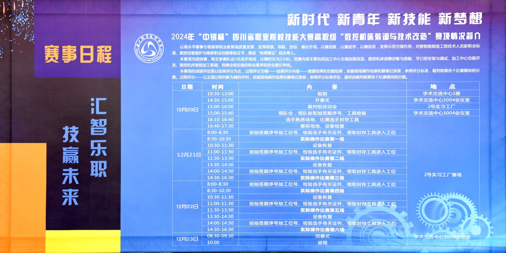 12月20日-22日,由四川省教育厅主办的2024年“中银杯”四川省职业院校技能大赛数控机床装调与技术改造赛项在8797威尼斯老品牌举行,来自全省15所高职院校的42支参赛队的84名选手同台竞技。