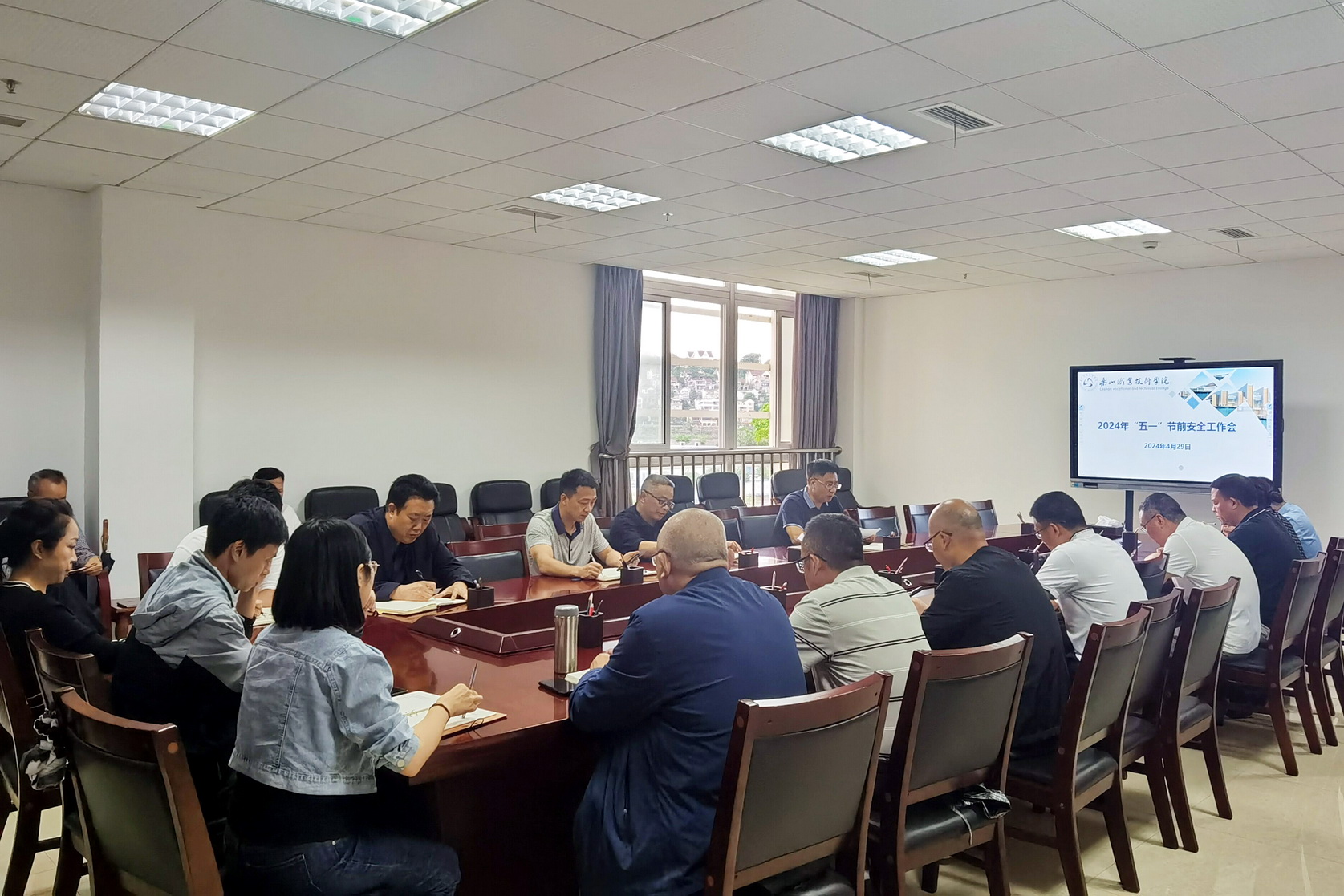 4月29日下午,学校“五一”节前安全工作会在行政楼332会议室召开,学校党委委员、副校长张学河、封家福,相关处室负责人,各二级学院党总支书记、专职副书记,保卫处相关人员参会。