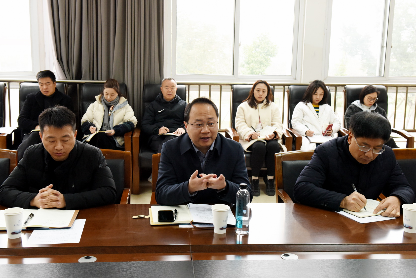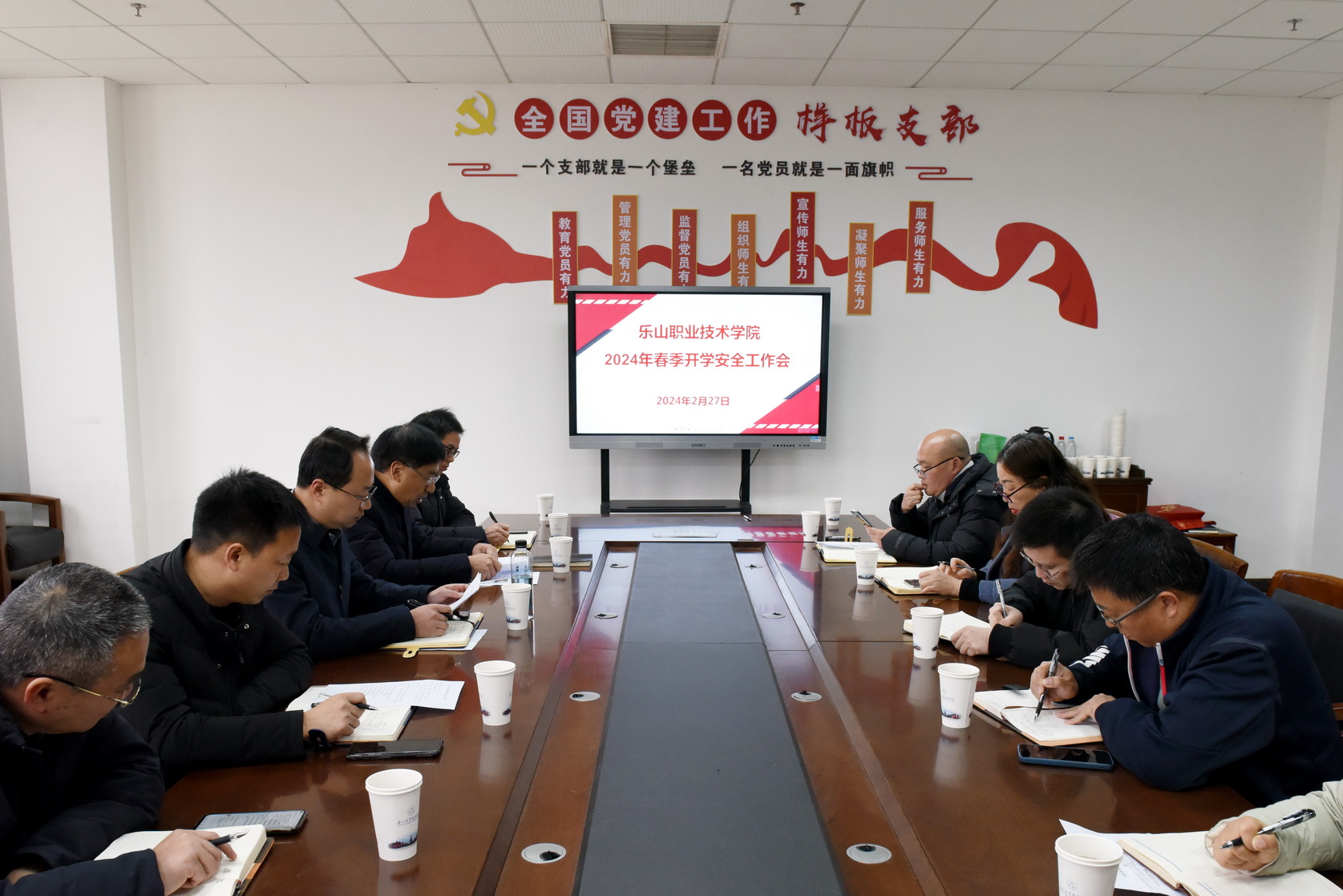 2024年2月27日上午,春季学期安全工作会议在2号教研楼201会议室召开,学校党委副书记张佳,校党委委员、副校长封家福,安全工作重点处室负责人,各二级学院党总支书记、专职副书记,驻校民警,保卫处相关人员参会。会议由封家福主持。