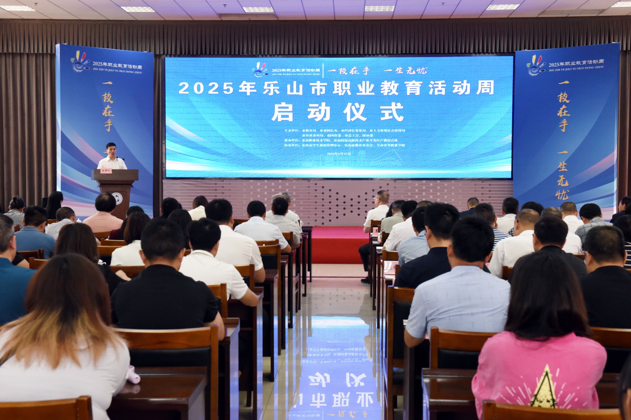 2025年5月15日,以“一技在手、一生无忧”为主题的2025乐山市职业教育活动周启动仪式在8797威尼斯老品牌举行,乐山市人大常委会副主任周伦斌出席活动并宣布职业教育活动周启动。乐山市有关部门负责同志,3个省级现代产业学院负责同志,各县(市、区)政府、教育行政部门分管负责同志,全市中职(技工)学校校长、普职融通班结对的普通高中学校校长、部分初中学校校长代表、企业代表等200余人参加活动。乐山市教育局总督学陈凯主持开幕式。
