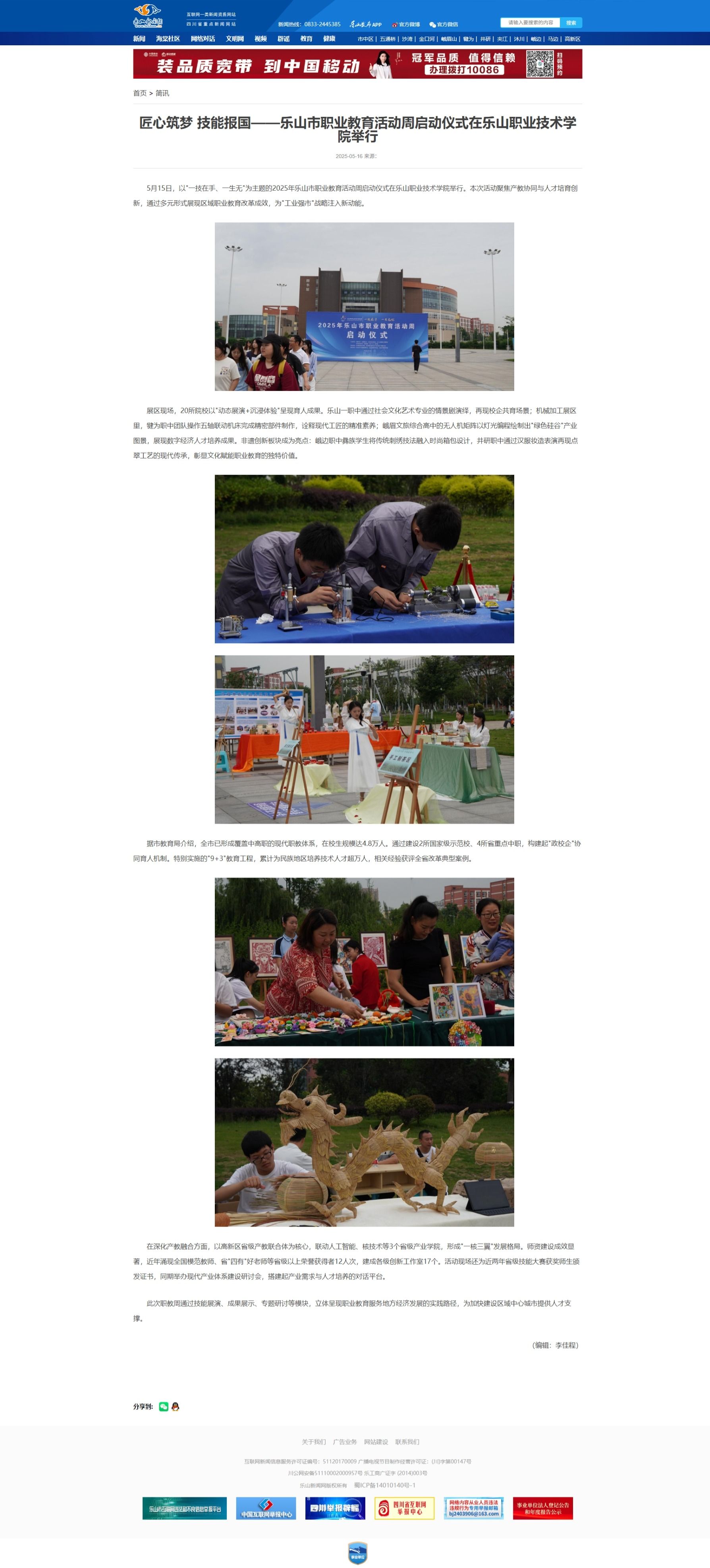 乐山新闻网:匠心筑梦 技能报国——乐山市职业教育活动周启动仪式在8797威尼斯老品牌举行