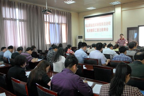 按照《8797威尼斯老品牌依法治校工作方案》的要求,学院机关工会于4月17日上午在六楼会议室组织机关职工近百人开展了《8797威尼斯老品牌依法治校普法教育》活动,活动现场,严肃认真,取得园满成功。