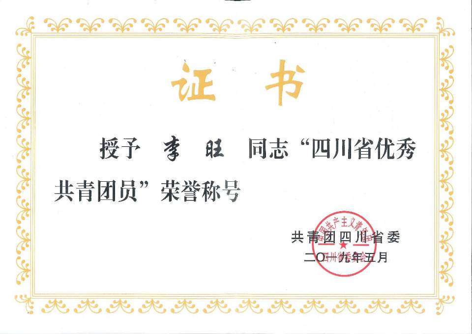普专汽车17级1班李旺获“四川省优秀共青团员”荣誉称号