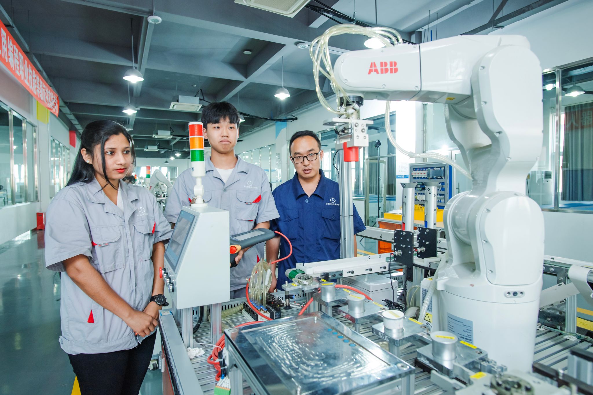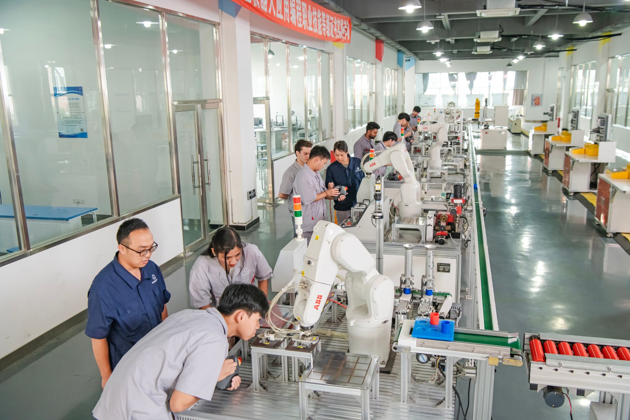 学院建有工业机器人系统集成实训中心、电气控制与PLC实训室、传感器实训室、电工电子实训室、机械制图实训室、智能制造虚拟仿真实训室等,对接真实职业场景或工作情境,进行电气控制与PLC技术、工业机器人编程与应用、工程制图、智能线数字化设计与仿真、工控网络与组态技术等实训。