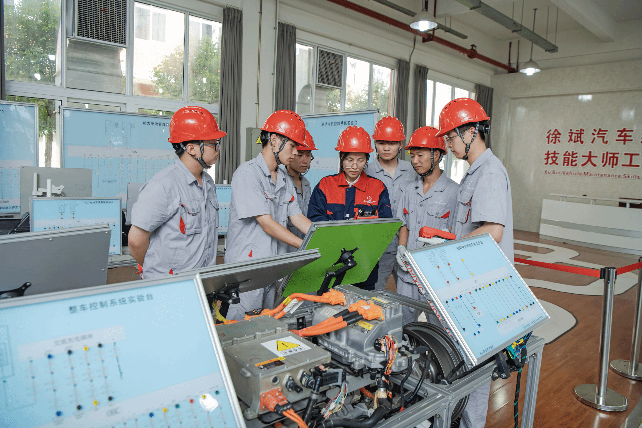 汽车电气系统实训室由多台汽车电气系统教学平台组成,主要用于汽车电气系统的检测与维修实训。学生可以在这里学习汽车电气系统的组成与工作原理、故障诊断与排除方法。实训内容包括汽车照明系统、启动系统、充电系统、点火系统和仪表系统等。通过实训,学生能够掌握汽车电气系统的各项维修技能,提升故障诊断与维修的能力。