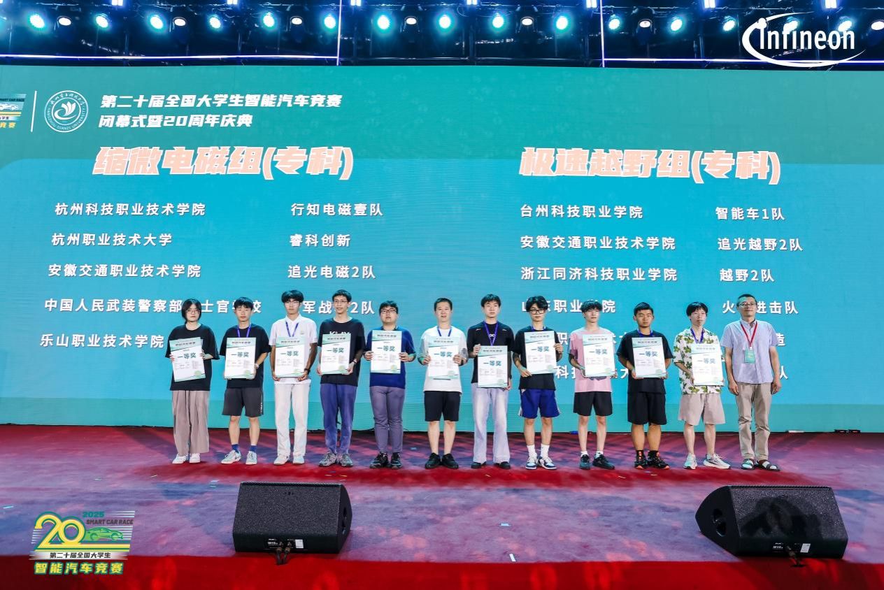 8月18-20日,第二十届全国大学生智能汽车竞赛在杭州电子科技大学举行,威尼斯由智能制造学院陈景琪、刘磊两位老师率领3支队伍(缩微电磁组、极速越野组和智慧配送组)前往参赛,经过激烈角逐,夺得缩微电磁组(专科组)全国一等奖1项,极速越野组(专科组)全国二等奖1项。
