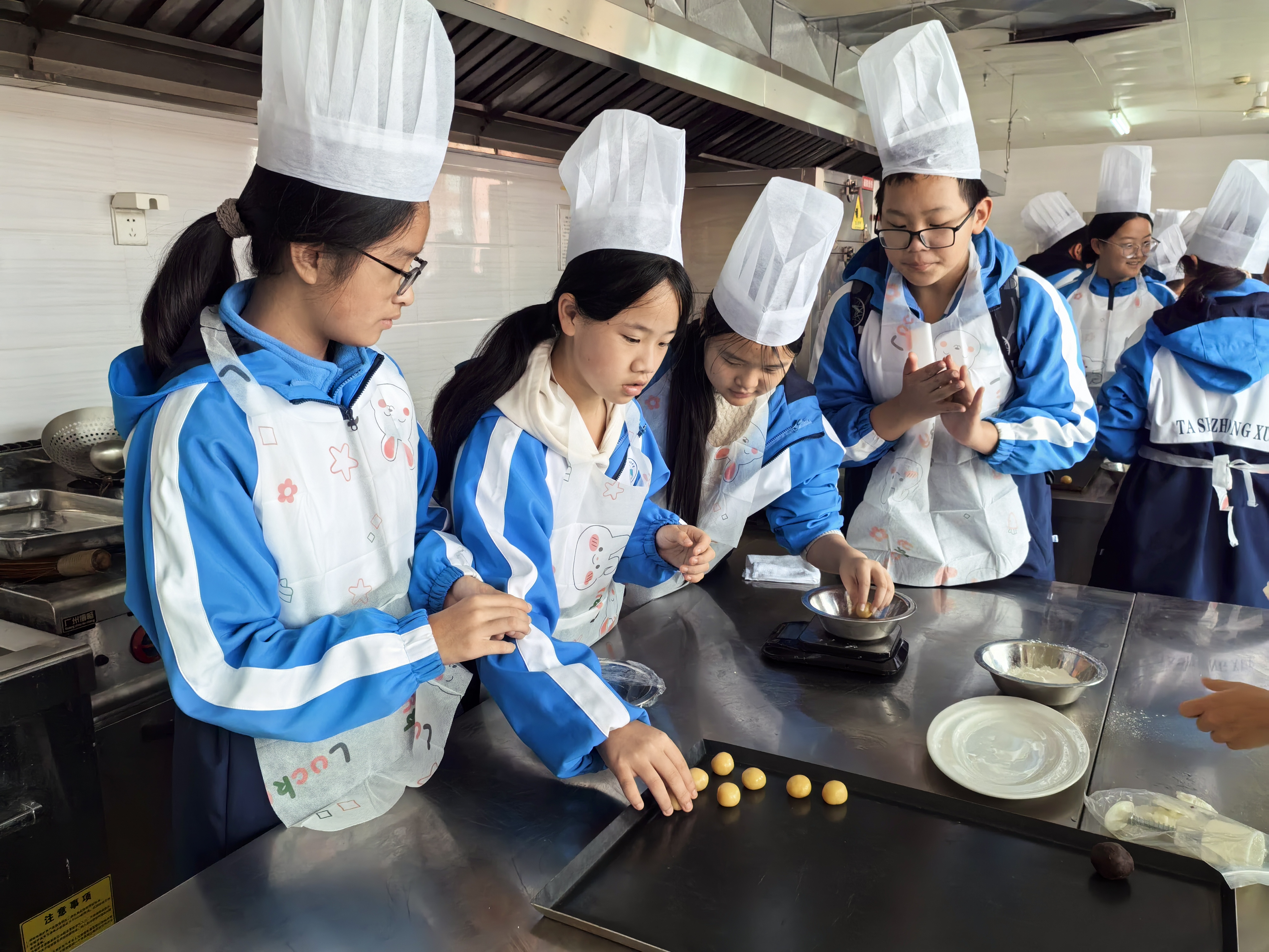 “舌尖上的乐山·美食文化研学之旅”主题将乐山特色美食与文化传承相结合。学生们亲手参与豆腐脑、月饼及西点等嘉州风味食品的制作,在劳动中深入了解乐山饮食文化的精髓,体验“舌尖上的乐山”独特魅力。