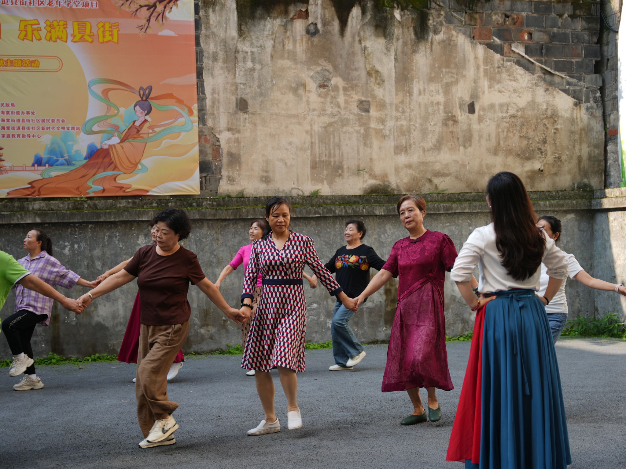 2025年10月15日,马克思主义学院副院长刘倩(主持行政工作)及思政课教师刘晓锐走进县街社区“乐享嘉学 乐+课堂”,为社区老年学员们带来了一堂别开生面的民族舞蹈教学课。此次活动是校社共建“乐享嘉学 乐+课堂”项目的生动实践,也是将思想政治教育融入社区文化服务、延伸思政课堂触角的有益探索。