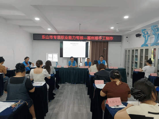 2025年8月16日,文化旅游学院教师马世新、詹恒应邀参加嘉州绣专项职业能力考核。嘉州绣是乐山市市级非物质文化遗产,首批“非遗四川・百城百艺”四川非遗品牌,也是蜀绣的主要分支。此次考核共有30名绣娘参加,通过职业能力考核激励更多人学习嘉州绣,推动这项传统手工艺的传承。