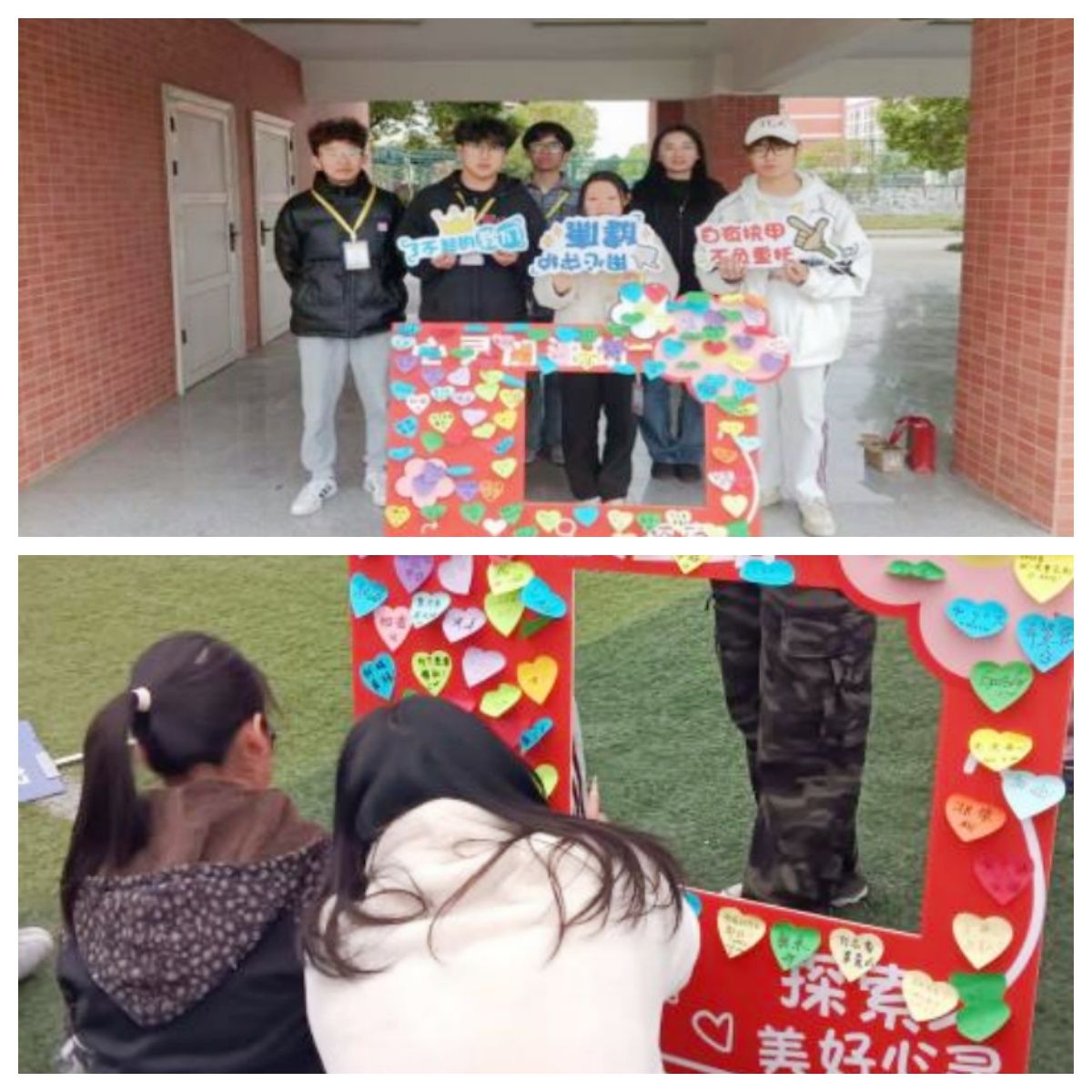 除了趣味体育项目外,本次活动还特别设置了心理互动环节。同学们可以写下鼓励的话语,粘贴在“心灵加油站”KT板上。一句句温暖的话语,不仅为同学们的心灵带来了慰藉,也增进了彼此间的交流与理解。此外,活动还准备了心理解压小礼物,如随身记事本、压力捏捏乐等,帮助同学们缓解学业、生活压力,培养积极乐观的心态。