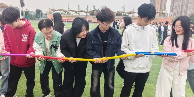 本次趣味运动会设置了“乒乓球传递”“跳长绳”“拔河比赛”“一圈到底”“脱胎换骨”等多个项目。赛场上,趣味与竞技碰撞出别样火花。不少选手因节奏把控不当让乒乓球“溜走”,现场笑声与加油声交织;各队伍通过低声沟通调整节奏,在反复尝试中找到最佳配合方式,充分展现了“不慌不忙、默契配合”的团队风采。最激烈的拔河比赛环节,各队伍紧握长绳、脚蹬地面,啦啦队的加油声此起彼伏,将氛围推向高潮。师生们在奔跑、协作中释放活力,充分展现了团结拼搏、积极向上的精神风貌。